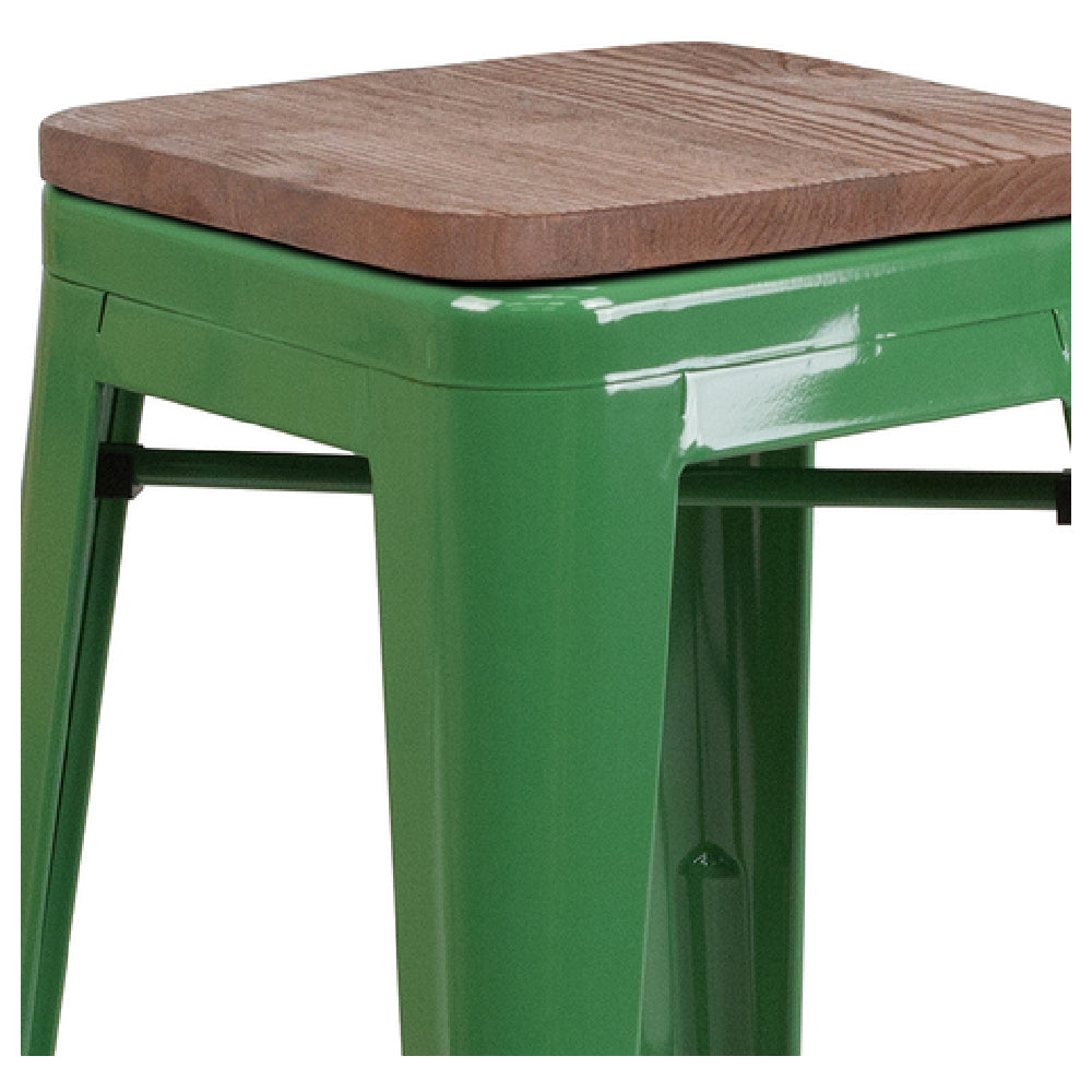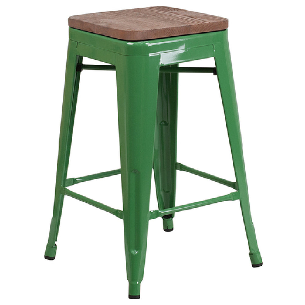 The Flash Furniture CH-31320-24-GN-WD-GG Bar Stool 500 lb. Weight Capacity Counter Height is a versatile seating solution for both residential and commercial environments. This backless bar stool is engineered to support up to 500 lbs., making it exceptionally sturdy for a variety of users. At counter height, it fits seamlessly into kitchen islands, bars, and high-top tables. A textured wood seat adds an element of sophistication and comfort, complemented by the stool’s galvanized steel construction with a durable powder coat finish that ensures longevity and resistance to wear. The cross brace under the seat provides additional stability and support, while the integrated footrest enhances user comfort during extended seating durations. Designed with practicality in mind, this stool is lightweight and can be stacked from 4 to 8 stools high, optimizing space in storage and transport. Plastic floor glides protect flooring surfaces, making it suitable for a range of settings, from industrial kitchens to urban lofts. Available in a vibrant green color, this bar stool requires assembly, and in-stock items typically ship within 24 hours, ensuring swift delivery for business needs.