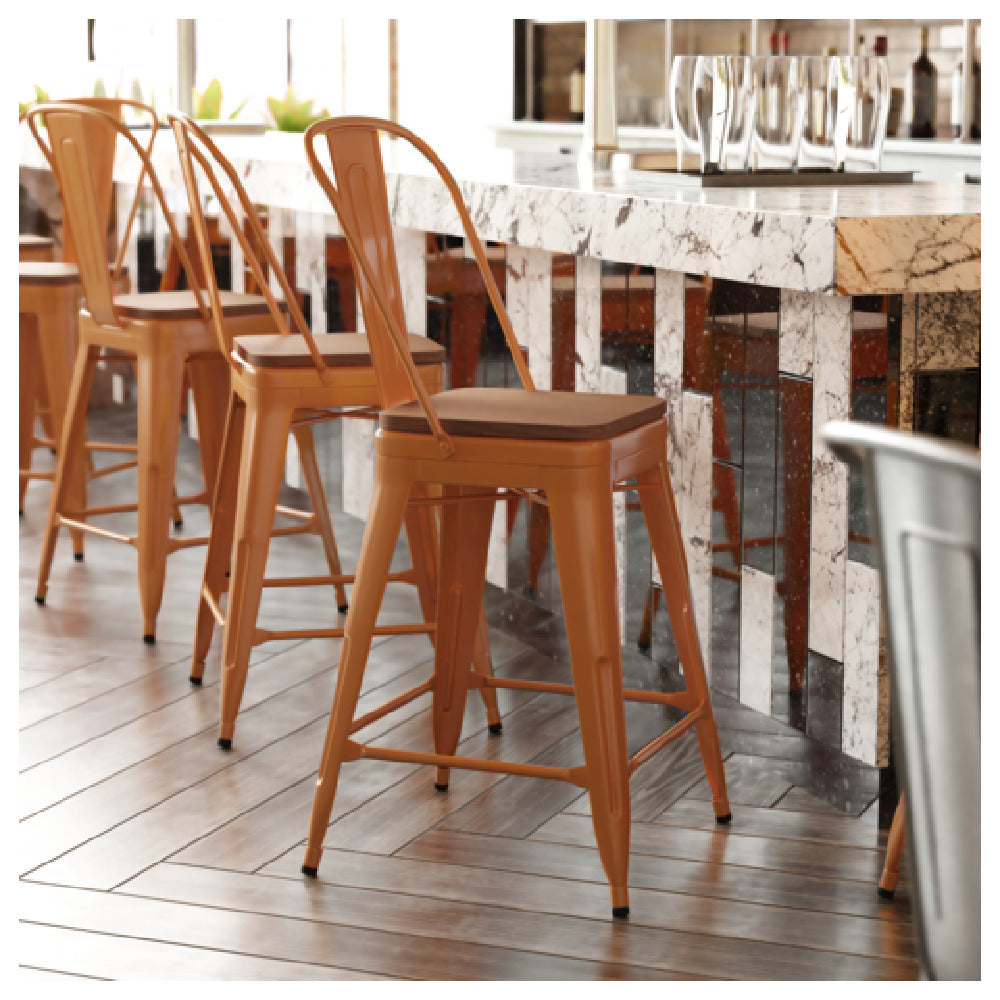 Flash Furniture CH-31320-24GB-OR-PL2T-GG Kai Bar Stool 500 Lb. Weight Capacity