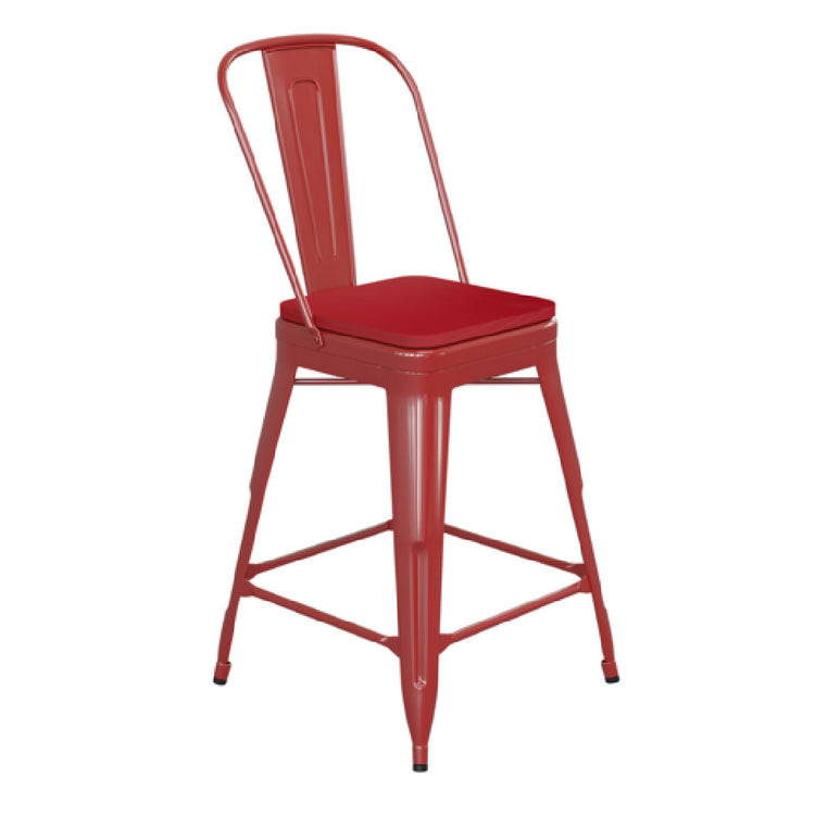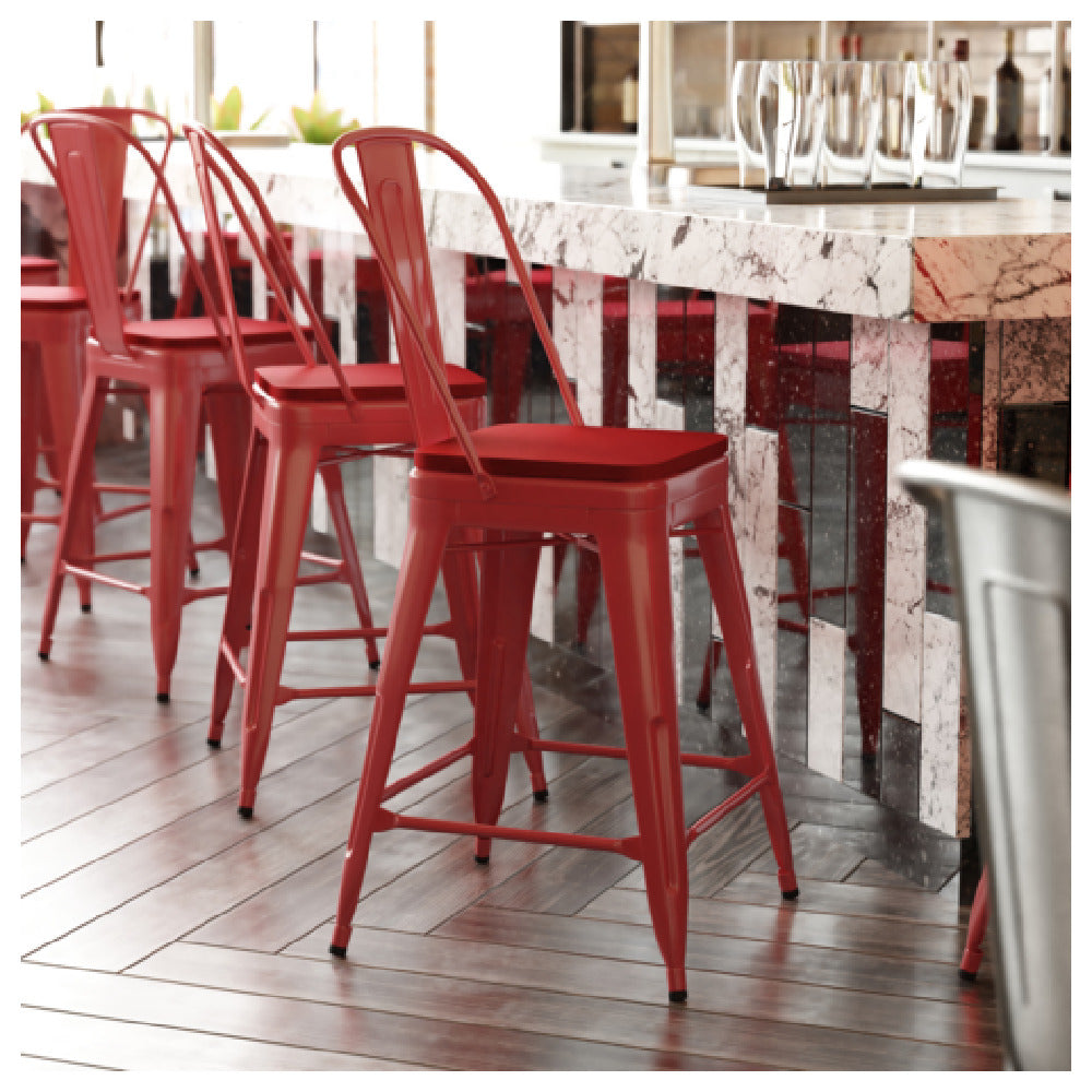 The Flash Furniture CH-31320-24GB-RED-PL2R-GG Kai Bar Stool 500 Lb. Weight Capacity stands out with its remarkable strength and versatile design, accommodating a wide range of users and settings. This bar stool is engineered with a robust weight capacity of 500 lbs., making it a reliable choice for both commercial and residential environments. Featuring a counter height and a curved back with a vertical slat, the Kai Bar Stool ensures ergonomic support and comfort. Its red poly resin seat adds a vibrant touch while being easy to clean and maintain. The cross brace under the seat provides additional stability, and the galvanized steel construction with a powder coat finish enhances durability, making it suitable for indoor and outdoor use. Equipped with a footrest, it offers added comfort, while the plastic floor glides protect flooring surfaces. The bold red color makes it a stylish addition to any space, whether in a trendy restaurant or a modern home kitchen. Assembly is required, allowing for convenient shipping and handling. With its blend of strength, style, and practicality, the Flash Furniture CH-31320-24GB-RED-PL2R-GG Kai Bar Stool is a versatile seating solution for various market segments within the hospitality and home furnishing industries.