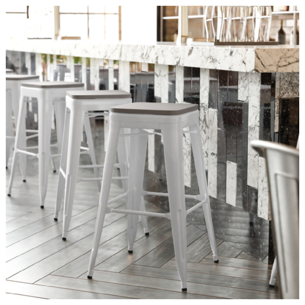 Flash Furniture CH-31320-30-WH-PL2G-GG Kai Bar Stool 500 Lb. Weight Capacity Backless