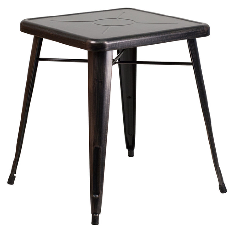 The Flash Furniture CH-31330-29-BQ-GG Table is an expertly designed piece suitable for both commercial and residential environments. It features a dining height with dimensions of 23-3/4"W x 23-3/4"D x 29"H and a footprint of 27-3/4"W x 27-3/4"D. This square table is constructed with a 2" thick edge, ensuring a robust and durable surface. The galvanized steel build is complemented by a powder coat finish, which enhances its resilience against the elements, making it ideal for indoor and outdoor use. Stability is further ensured with a cross brace, while rubber floor glides protect surfaces from scratches. Available in a black and antique gold color scheme, it offers an elegant aesthetic. Assembly is required, but its in-stock status ensures shipping within 24 hours, providing timely delivery for urgent needs. The Flash Furniture CH-31330-29-BQ-GG Table stands out in its market for its combination of aesthetic appeal and functional design, catering to diverse consumer segments seeking reliable and stylish furniture solutions.