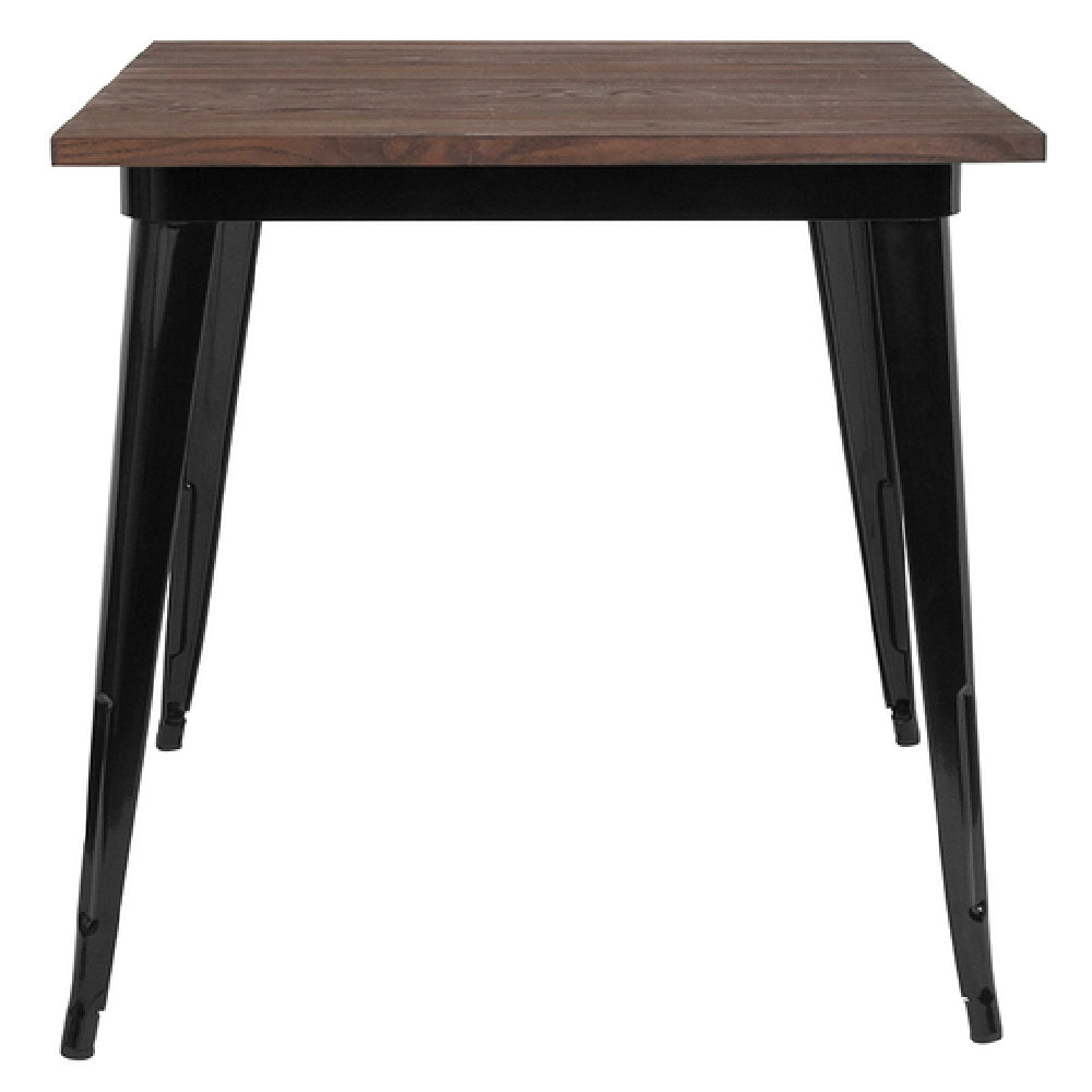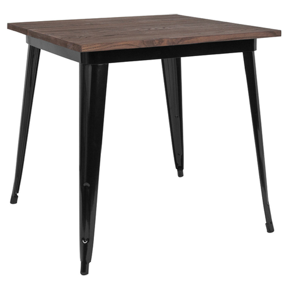 The Flash Furniture CH-51040-29M1-BK-GG Table features a square design with dimensions of 31-1/2" wide, 31-1/2" deep, and 30-1/2" high, making it suitable for dining height settings. This table is distinguished by its textured walnut elm wood top, which has a 1" thick edge, providing both durability and aesthetic appeal. The table is supported by a galvanized steel frame, enhancing its strength and stability, and is equipped with a cross brace for additional support. A powder coat finish not only adds to the table's resilience but also gives it a sleek black appearance. To protect different flooring types, this table includes rubber floor glides, ensuring smooth movement without damage. Assembling this table is required, but its straightforward construction makes it accessible for various markets, including residential dining areas, cafes, and restaurants. The product is typically in stock and ready for shipment within 24 hours, demonstrating a commitment to timely delivery. The blend of robust materials and thoughtful design details makes the Flash Furniture CH-51040-29M1-BK-GG Table a practical choice for diverse dining environments, promising both functionality and style.