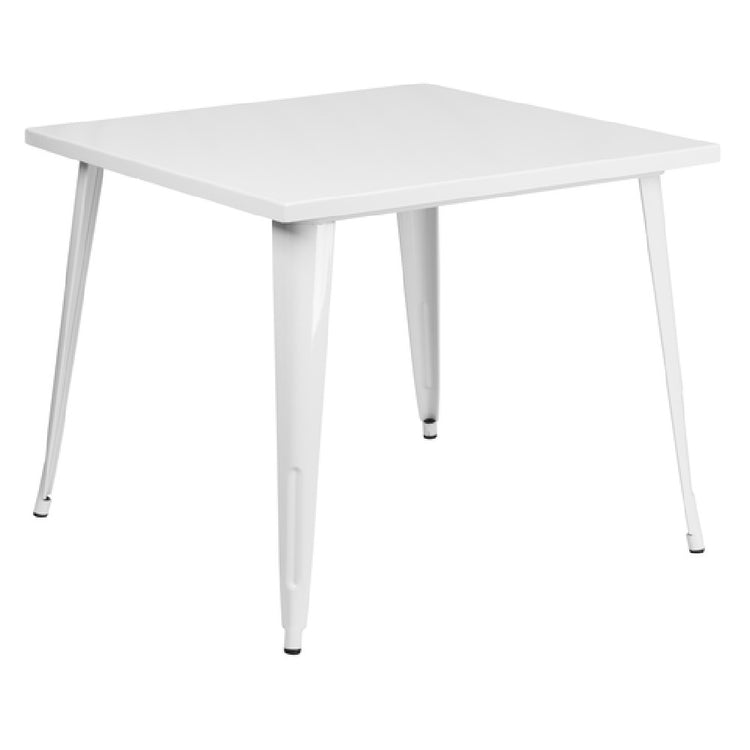 The Flash Furniture CH-51050-29-WH-GG Table is a versatile and durable piece designed to meet the needs of both commercial and residential spaces. With dimensions of 35-1/2 inches in width, 35-1/2 inches in depth, and a height of 29-3/4 inches, this table offers ample space for dining and other activities. Its square shape is complemented by a smooth top with a 1-1/4 inch thick edge, providing a sleek and modern aesthetic. The table is constructed from sturdy metal with a powder coat finish, ensuring resilience against wear and tear in both indoor and outdoor environments. A brace underneath the top provides additional support and stability, making it a reliable choice for frequent use. Rubber floor glides are incorporated to protect flooring and facilitate easy movement. This product is available in white, adding a clean and neutral touch to any setting. Assembly is required, but the table is designed for straightforward setup. In-stock items typically ship within 24 hours, ensuring quick delivery for immediate use. Whether for a bustling restaurant or a cozy home dining area, the Flash Furniture CH-51050-29-WH-GG Table combines functionality with style, catering to a wide range of market segments.