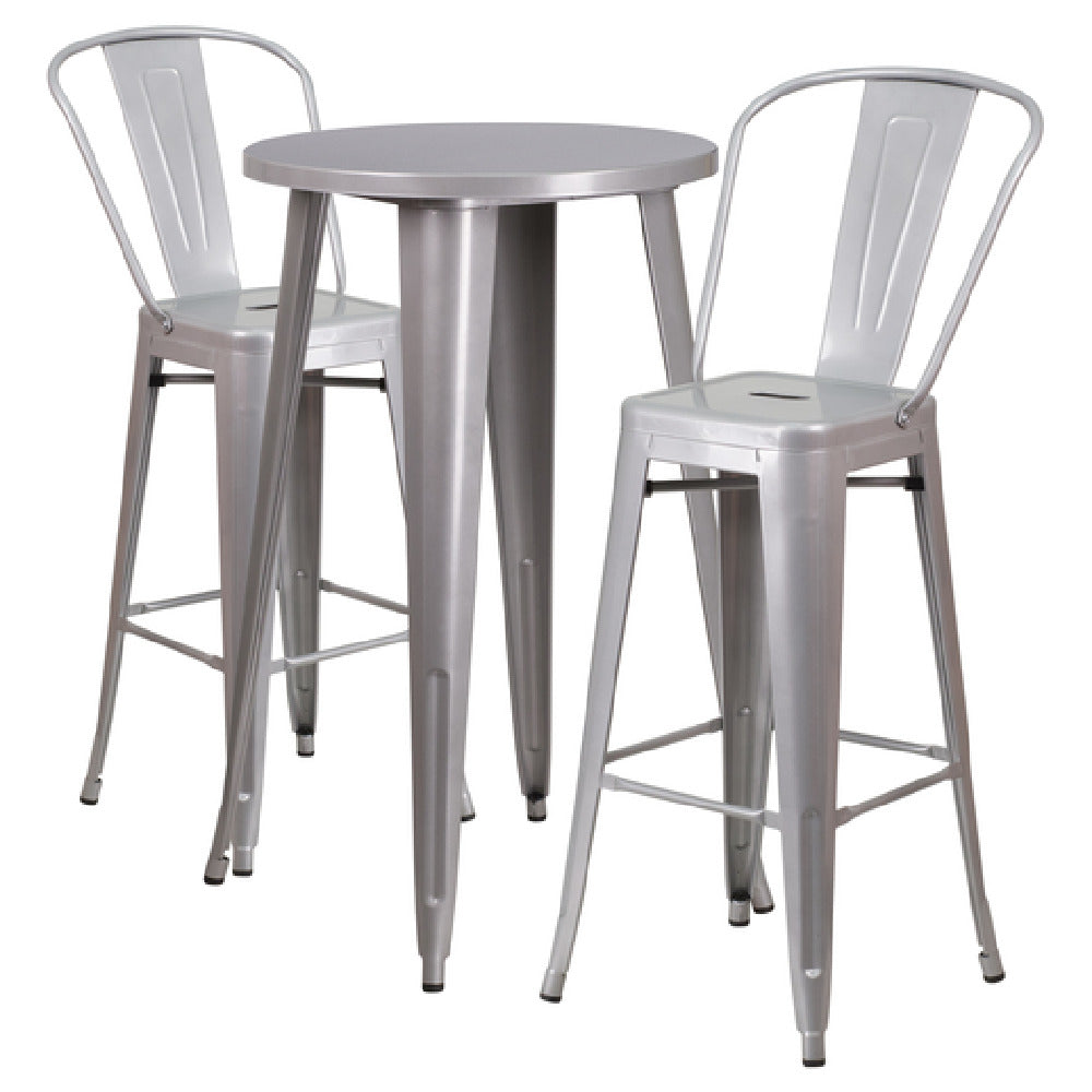 Flash Furniture CH-51080BH-2-30CAFE-SIL-GG Table And Bar Stool Set Includes (1) 24" Dia. X 41"H Table - 1/Set