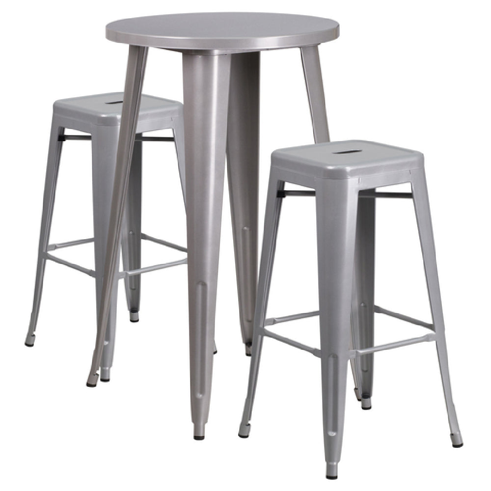 Flash Furniture CH-51080BH-2-30SQST-SIL-GG Table And Bar Stool Set Includes (1) 24" Dia. X 41"H Table - 1/Set