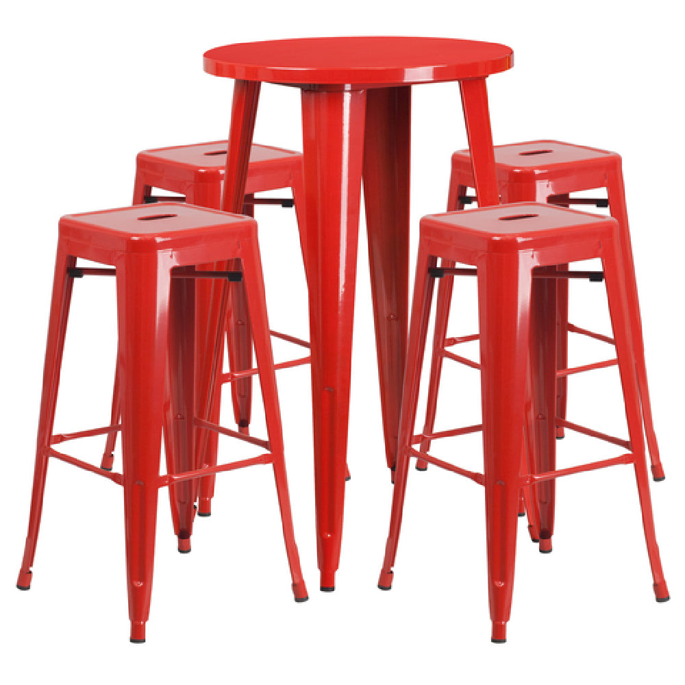 Flash Furniture CH-51080BH-4-30SQST-RED-GG Table And Bar Stool Set Includes (1) 24" Dia. X 41"H Table - 1/Set