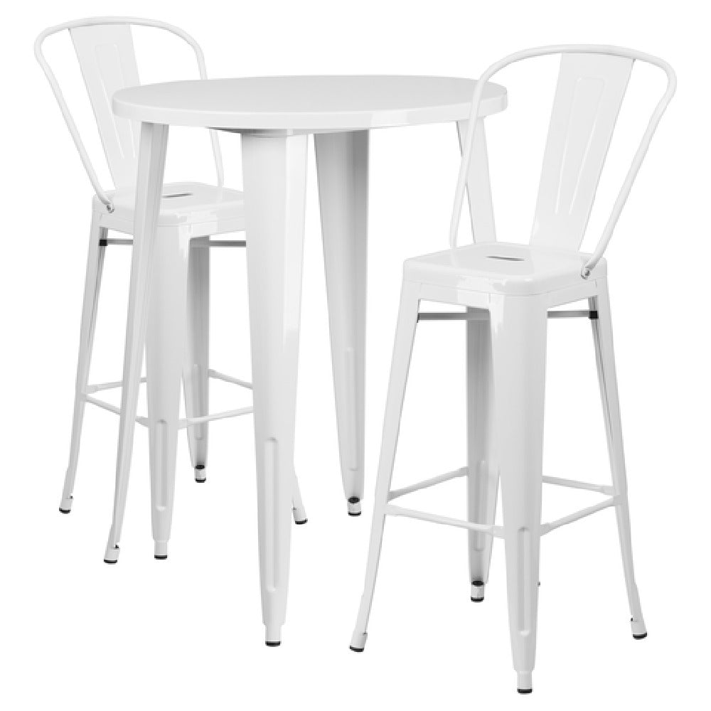 - Includes (1) 30" dia. x 41"H table and (2) bar stools