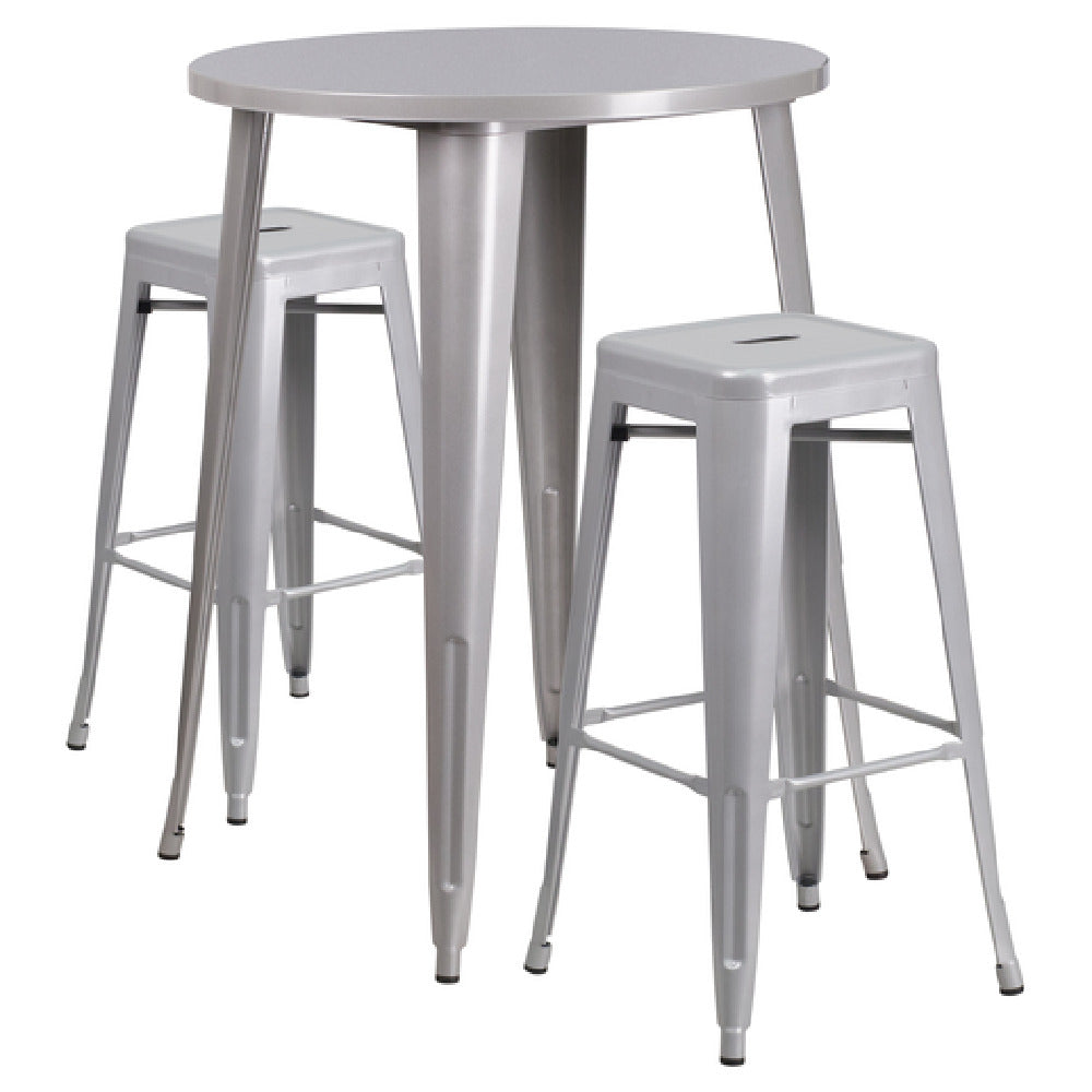 Flash Furniture CH-51090BH-2-30SQST-SIL-GG Table And Bar Stool Set Includes (1) 30" Dia. X 41"H Table - 1/Set
