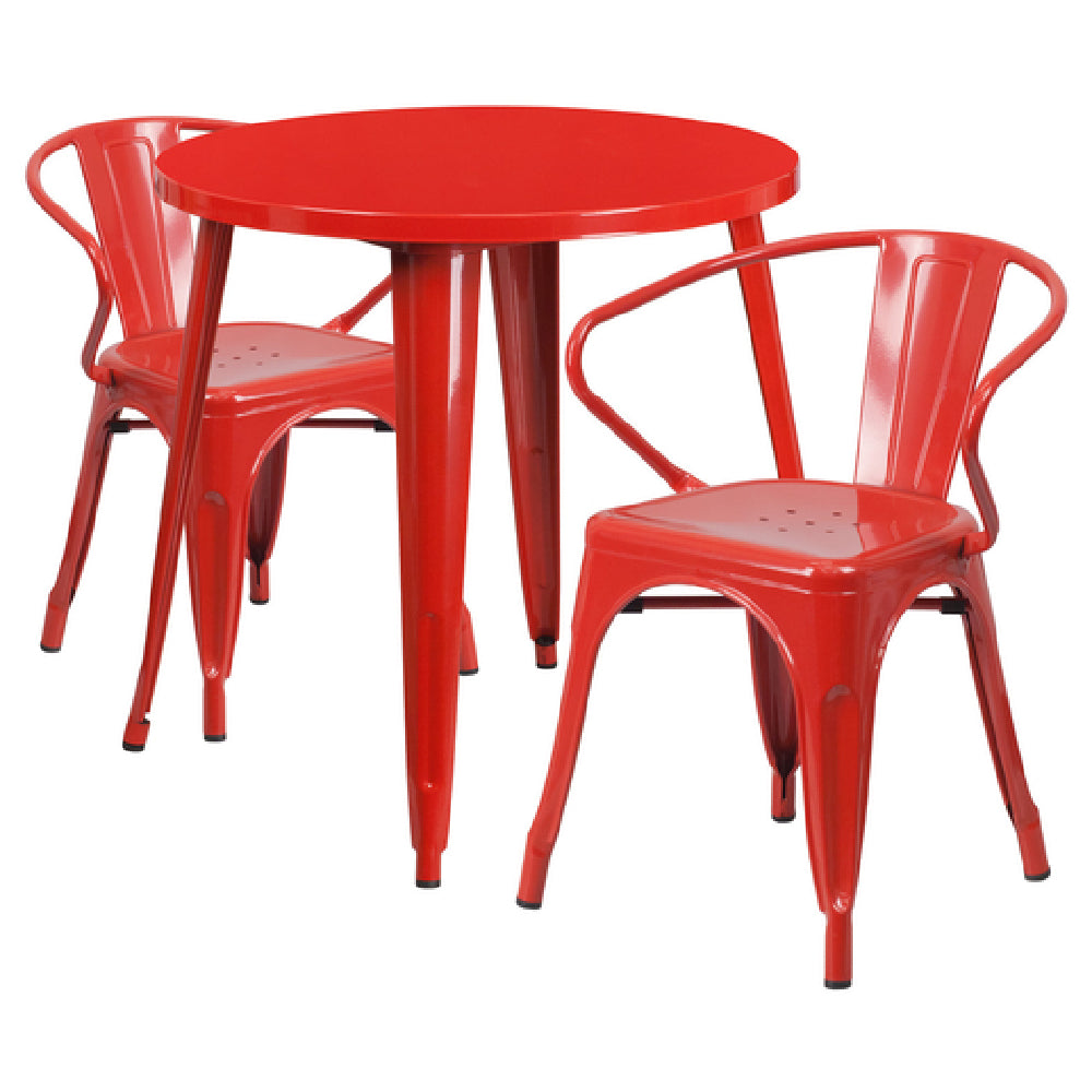 Flash Furniture CH-51090TH-2-18ARM-RED-GG Table And Chair Set Includes (1) 30" Dia. X 29-1/2"H Table - 1/Set