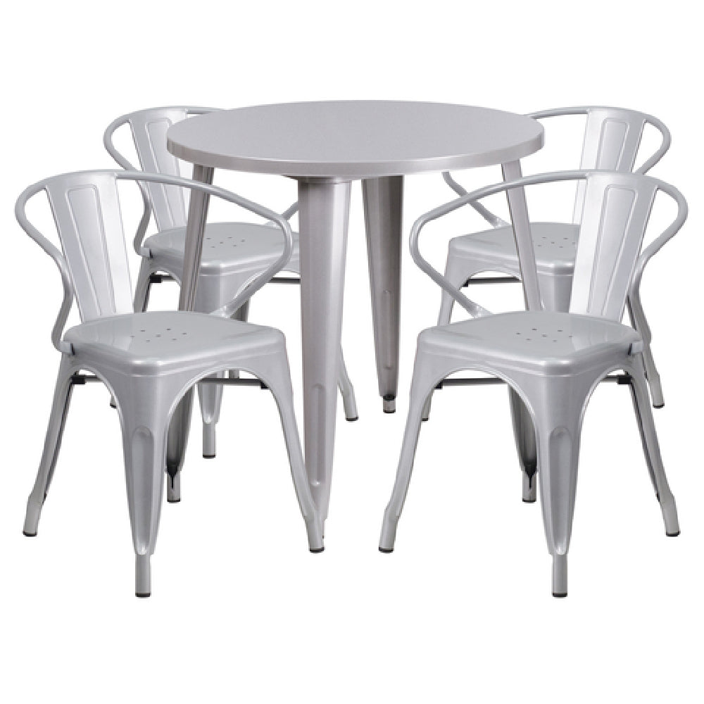 Flash Furniture CH-51090TH-4-18ARM-SIL-GG Table And Chair Set Includes (1) 30" Dia. X 29-1/2"H Table - 1/Set
