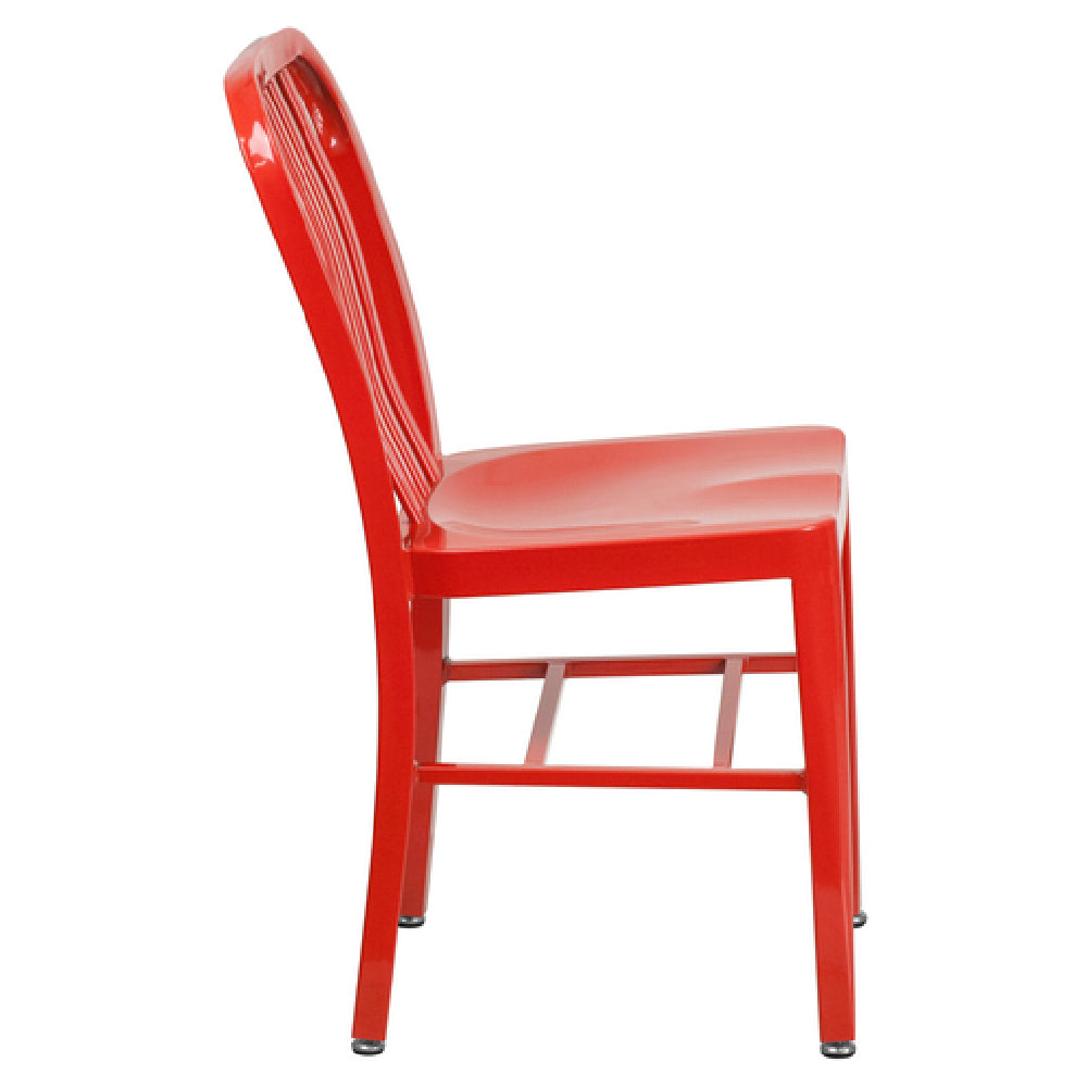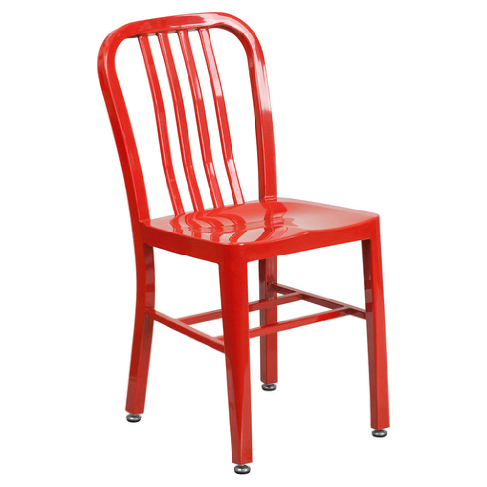 The Flash Furniture CH-61200-18-RED-GG Chair is a robust seating solution built to accommodate up to 500 lb., making it a suitable choice for both commercial and residential environments. This chair features a vertical slat back design and is constructed from galvanized steel, ensuring both durability and a modern aesthetic. Its red powder coat finish not only enhances its visual appeal but also adds an extra layer of protection against the elements, making it ideal for indoor and outdoor use. The chair's adjustable floor glides provide stability and protect floor surfaces, allowing for flexible placement in various settings. With quick shipping—typically within 24 hours for in-stock items—this chair is a practical option for those in need of immediate seating solutions. Its combination of strength, style, and adaptability positions it as a versatile choice for various settings, from bustling cafes to home patios, where reliability and design both matter.