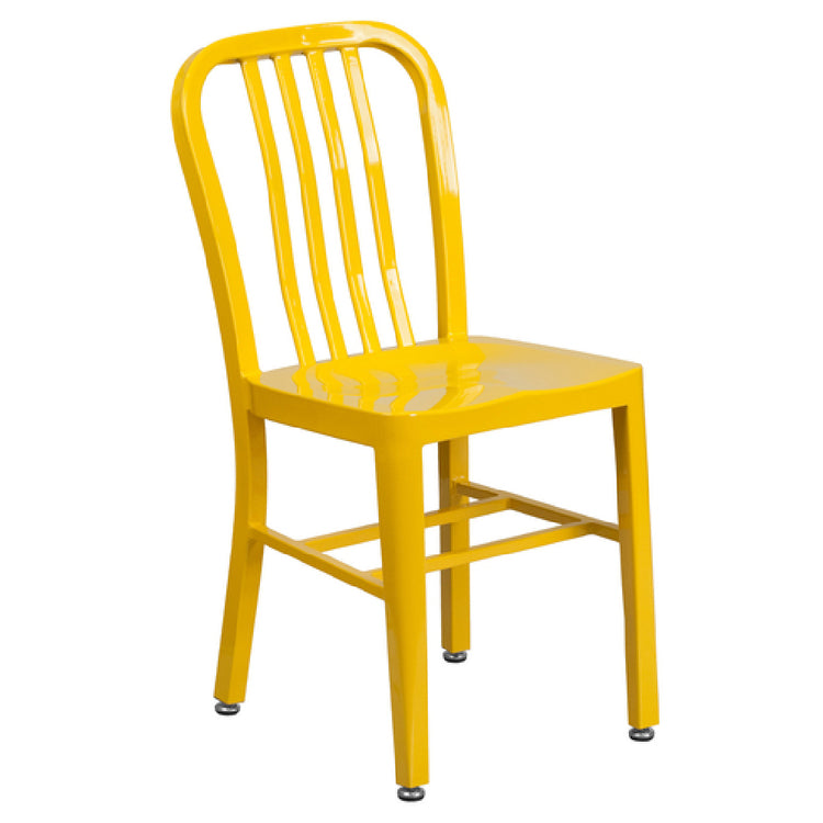 The Flash Furniture CH-61200-18-YL-GG Chair - 500 lb. Weight Capacity - Vertical Slat Back is a versatile seating solution designed to cater to a wide range of environments, offering both commercial and residential applications. This chair features a robust 500 lb. weight capacity, ensuring durability and support for a variety of users. Its vertical slat back design is not only aesthetically pleasing but also contributes to comfortable seating. Constructed from galvanized steel with a powder coat finish, the chair is built to withstand various conditions, making it suitable for both indoor and outdoor use. The inclusion of adjustable floor glides ensures stability on uneven surfaces, providing a reliable seating option in diverse settings. With its vibrant yellow color, the chair adds a pop of brightness to any space. The Flash Furniture CH-61200-18-YL-GG Chair is typically available for quick shipping within 24 hours, ensuring prompt delivery for immediate needs. Its combination of strength, comfort, and eye-catching design makes it an exceptional choice for restaurants, cafes, patios, or any setting that demands both style and functionality. This chair perfectly balances practicality with a striking visual appeal, making it a standout addition to any seating arrangement.