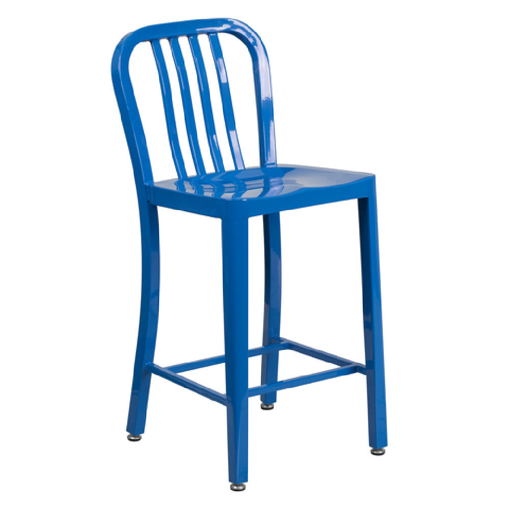 The Flash Furniture CH-61200-24-BL-GG Bar Stool 500 Lb. Weight Capacity Counter Height is a versatile seating solution designed to meet the demands of both commercial and residential environments. With an impressive weight capacity of 500 lbs, this bar stool offers robust support for users, making it ideal for high-traffic areas where durability is key. The counter height design is complemented by a vertical slat back, providing both aesthetic appeal and comfort. Constructed from galvanized steel with a sleek powder coat finish, this stool is engineered for both indoor and outdoor use, offering flexibility across various settings. The integrated footrest adds to user comfort, while the adjustable floor glides ensure stability on uneven surfaces. Available in a vibrant blue, this bar stool can add a pop of color to any space. Its practical design and durable build make it a valuable addition to restaurants, cafes, or home bars. In-stock items typically ship within 24 hours, ensuring quick delivery for your seating needs.