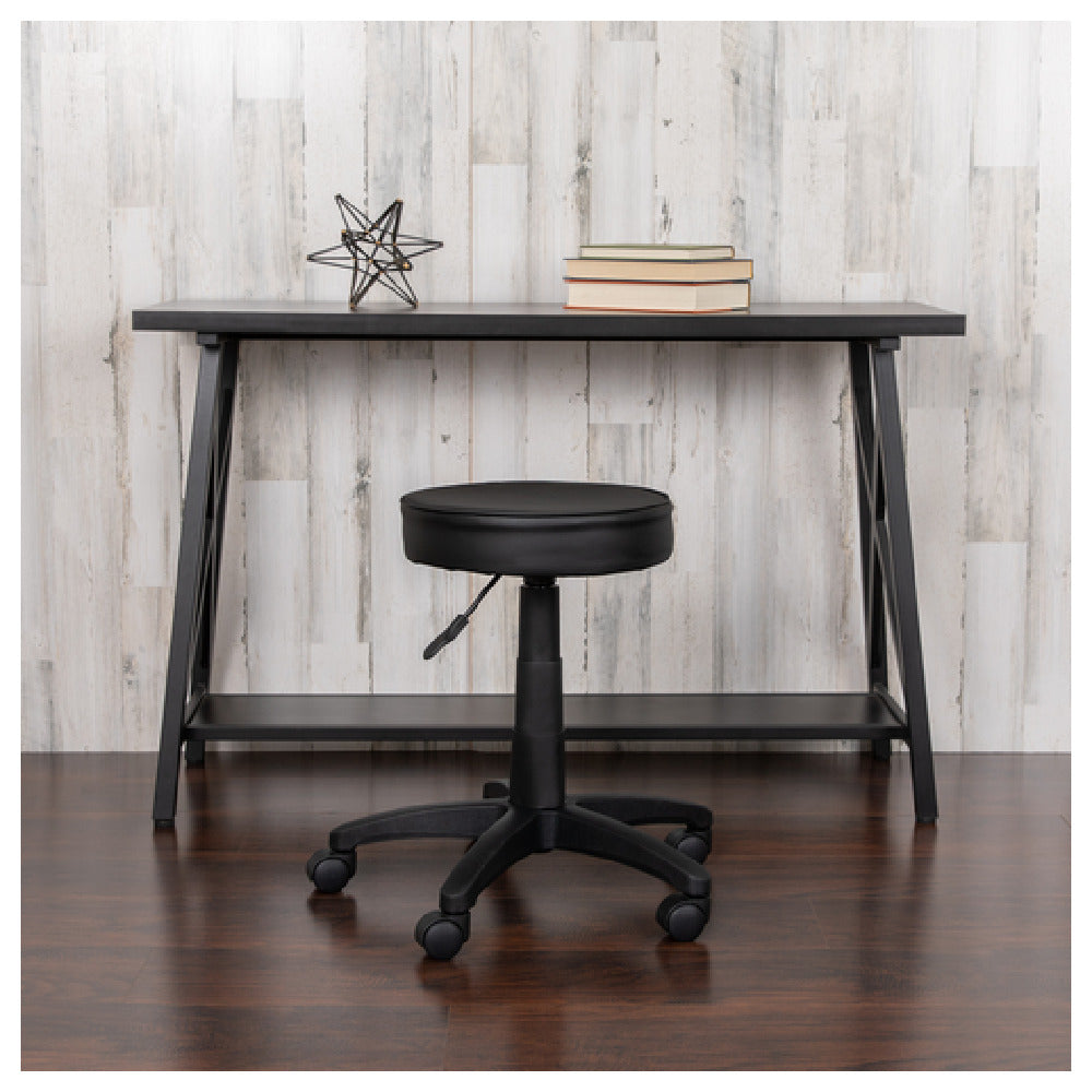 The Flash Furniture CH-82042-3X01-GG Stool is a versatile seating solution, designed to cater to various professional environments with its robust specifications. With a weight capacity of 250 pounds, this stool is engineered for durability and stability. It features an ergonomic molded seat that ensures comfort over extended periods, making it ideal for environments such as offices, workshops, and classrooms. The pneumatic adjustable height function allows users to tailor the seat height to their specific needs, enhancing usability across different tasks and settings. Measuring 23-1/4 inches in both width and depth and standing at 21-1/2 inches high, it strikes a balance between a compact footprint and ample seating space. The stool's 5-star base is equipped with dual-wheel casters, providing smooth mobility across various floor types. Finished in a sleek black, the stool effortlessly complements diverse interior styles. This combination of ergonomic design, adjustability, and mobility makes the Flash Furniture CH-82042-3X01-GG Stool a practical asset for professionals seeking comfort and functionality in their seating options.