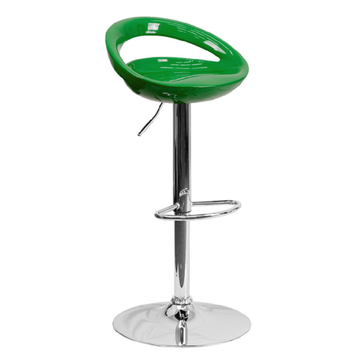 The Flash Furniture CH-TC3-1062-GN-GG Swivel Bar Stool is a versatile seating solution designed for residential use, combining contemporary style with functional adjustability. It features a low back design with a plastic rounded back and a plastic contoured seat that provides comfort and modern aesthetics. The stool includes a gas lift mechanism, allowing the seat height to be easily adjustable from counter to bar height, catering to various seating preferences. The inclusion of a footrest adds to the ergonomic comfort, making it suitable for extended use. The sturdy 17-5/8" diameter chrome base ensures stability, while the green ABS construction highlights its stylish yet durable nature. This piece requires assembly upon delivery, with in-stock items typically shipping within 24 hours, ensuring prompt availability. Its contemporary design and functional flexibility make it an ideal choice for a range of residential environments, from kitchen counters to stylish home bars. The Flash Furniture CH-TC3-1062-GN-GG Swivel Bar Stool efficiently blends form and function, providing a chic and adjustable seating option to complement modern home interiors.