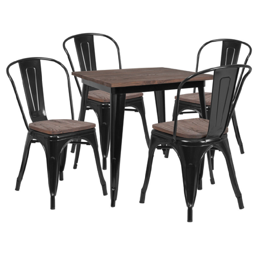 The Flash Furniture CH-WD-TBCH-18-GG Table and Chair Set is an expertly crafted ensemble perfect for both commercial and residential spaces, offering a blend of functionality and durability. This set features a 31-1/2" square table, providing ample surface area for various activities. The table is topped with elm wood, known for its strength and durability, making it a reliable choice for long-term use. Complementing the table are four stackable chairs, allowing for convenient storage and flexibility in seating arrangements. The entire set is constructed with a galvanized steel frame, ensuring robustness and resistance to corrosion, which is particularly advantageous for environments exposed to varying weather conditions. The black finish adds a sleek and modern aesthetic, suitable for cafes, restaurants, or home dining areas. This table and chair set stands out for its practicality, combining sturdy materials with a design that accommodates both aesthetic and functional needs. Its stackable nature is ideal for spaces requiring versatile configurations, while the quality materials ensure longevity and ease of maintenance. The Flash Furniture CH-WD-TBCH-18-GG is a smart choice for those seeking a reliable and stylish furniture solution for diverse settings.
