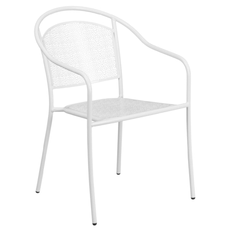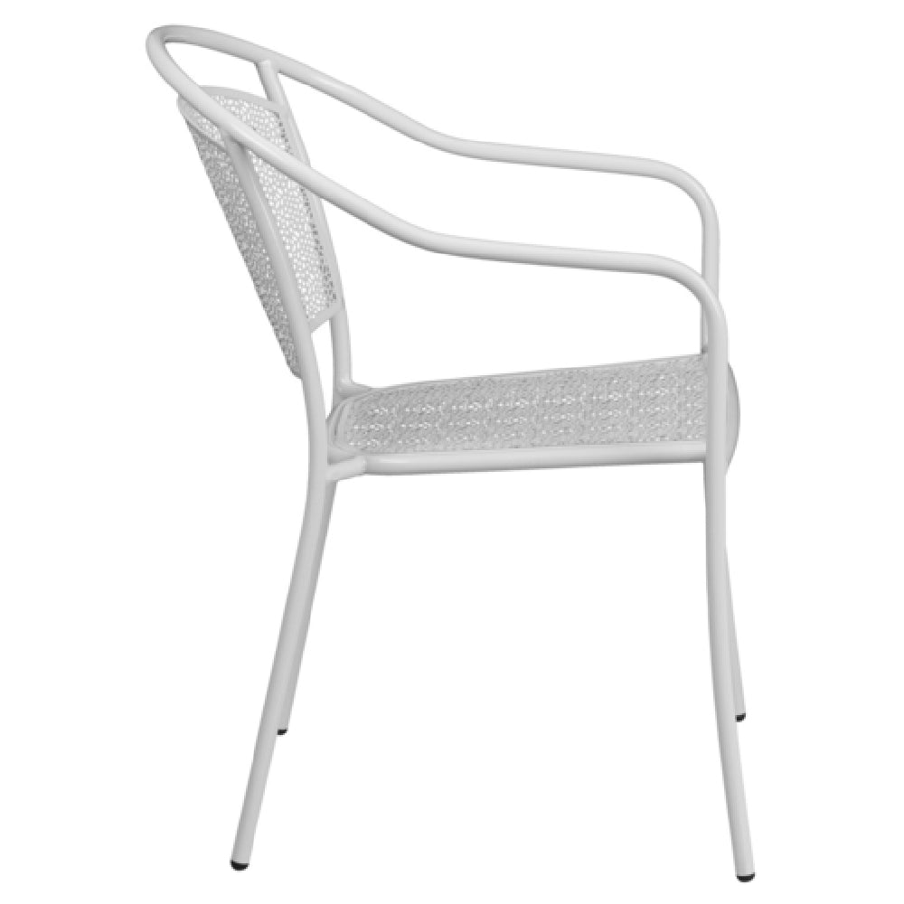 The Flash Furniture CO-3-WH-GG Patio Stacking Armchair is crafted with a curved round back and a distinctive rain flower seat and back design, making it a stylish and functional addition to any space. Engineered with a durable 1.2mm tubular steel frame, it boasts a white powder coat finish that enhances its resistance to the elements, ensuring longevity in both indoor and outdoor settings. This lightweight armchair is thoughtfully constructed with plastic floor glides to protect flooring surfaces, making it suitable for commercial and residential use alike. It offers practical storage solutions by stacking up to 8 chairs high, optimizing space in any environment. Versatility is at the core of its design, as it transitions seamlessly from patio to dining room, accommodating a variety of settings. The Flash Furniture CO-3-WH-GG armchair, with its robust construction and aesthetic appeal, is an ideal choice for those seeking both style and functionality in seating options. Available in stock, items typically ship within 24 hours, ensuring prompt delivery. This chair represents a compelling option for businesses and homeowners alike, blending quality craftsmanship with practical features to meet diverse seating needs.