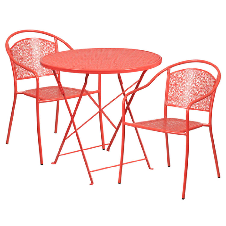 Flash Furniture CO-30RDF-03CHR2-RED-GG Patio Table Set Includes (1) Folding Table: 30" Dia. X 28"H - 1/Set