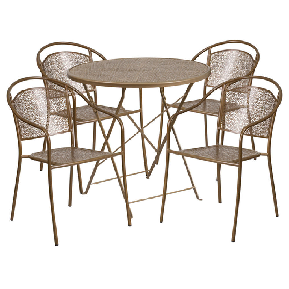 Flash Furniture CO-30RDF-03CHR4-GD-GG Patio Table Set Includes (1) Folding Table: 30" Dia. X 28"H - 1/Set