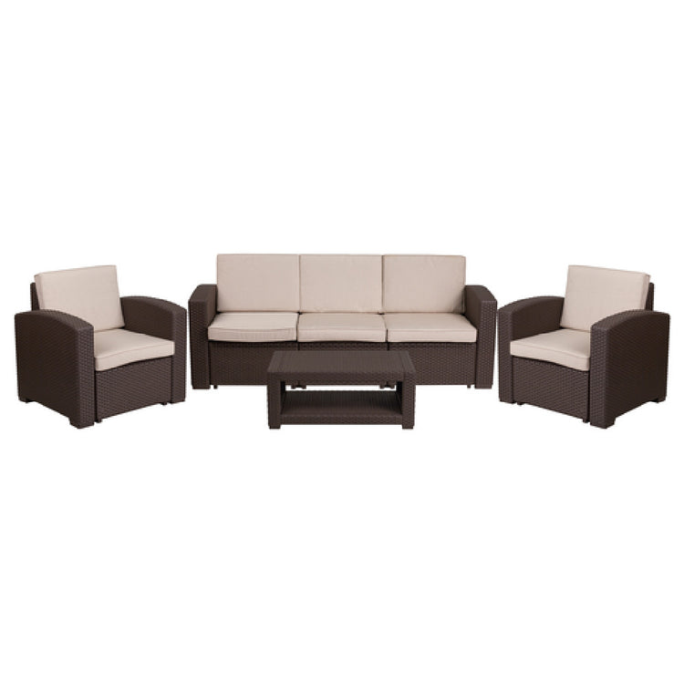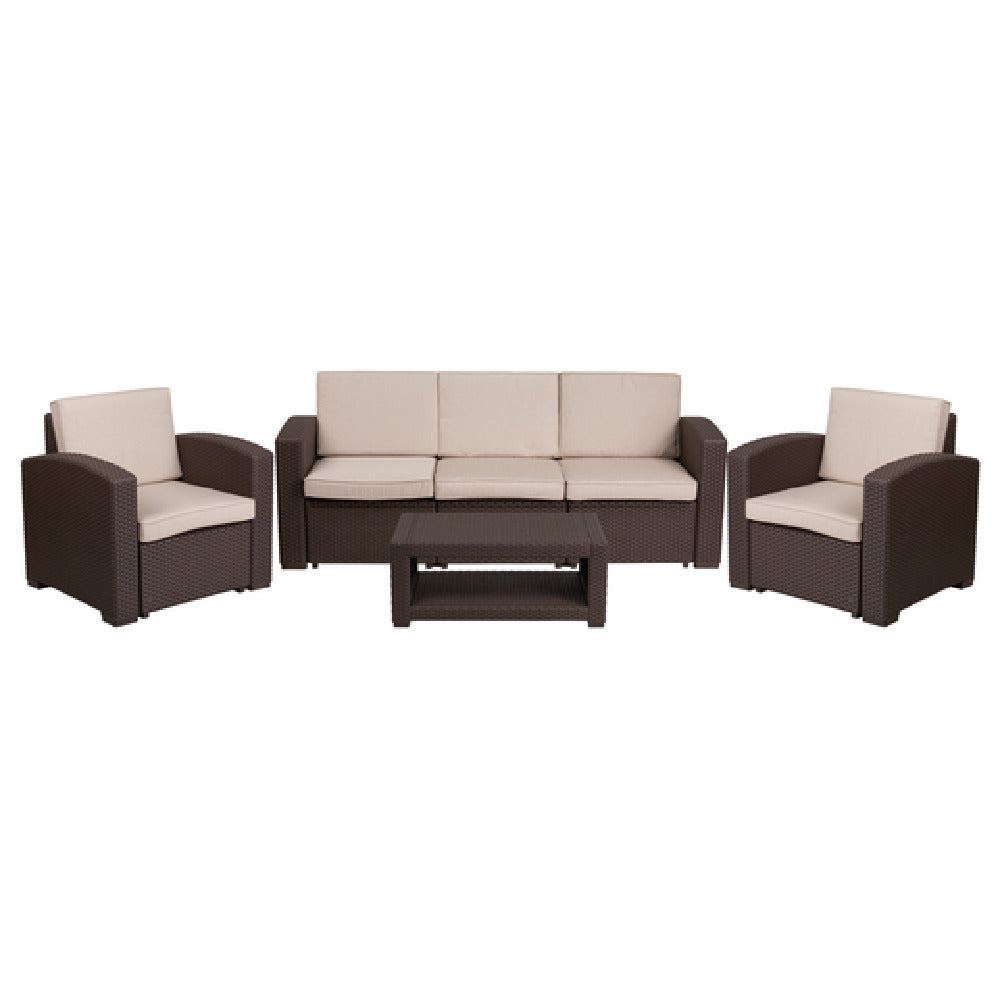 Flash Furniture DAD-SF-113R-CBN-GG Chair Sofa And Table Set Faux Rattan - 1/Set