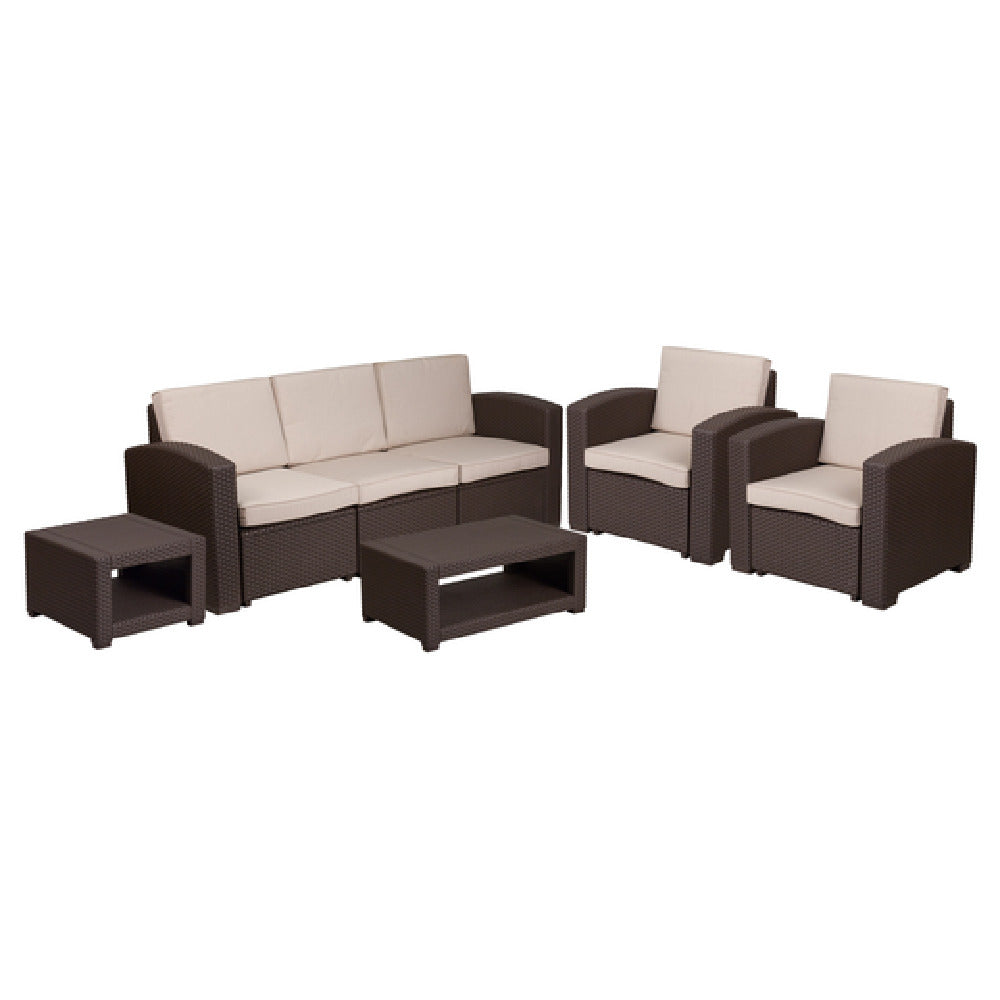 Flash Furniture DAD-SF-113RS-CBN-GG Chair Sofa And Table Set Faux Rattan - 1/Set