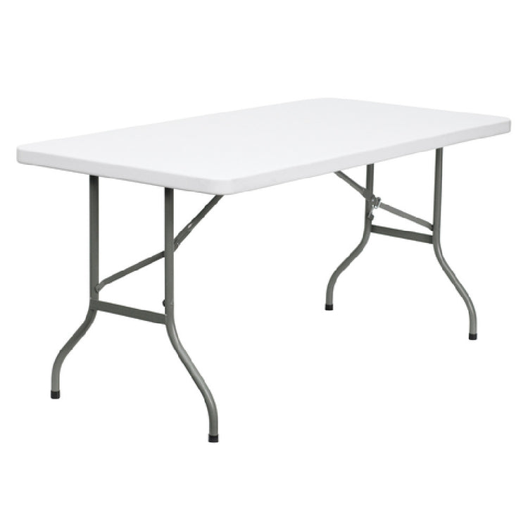 The Flash Furniture DAD-YCZ-152-GG Folding Table is a versatile and practical solution for both indoor and outdoor gatherings. Measuring 60 inches in width, 30 inches in depth, and 29 inches in height, this rectangular table comfortably seats up to 6 adults. It boasts a 1-3/4-inch thick granite white plastic table top, which is both waterproof and resistant to impacts and stains, ensuring durability and easy maintenance. The table's gray powder-coated metal locking legs provide stability and support a static load capacity of 330 pounds, making it reliable for various uses. Protective floor caps on the legs safeguard floors from scratches, enhancing its suitability for a range of environments. Designed for convenience, the table is lightweight and easy to transport, making it ideal for events, conferences, or impromptu outdoor activities. Its robust construction and quick assembly features allow it to accommodate different market segments, from business event planners to home users seeking multifunctional furniture solutions. With in-stock items typically shipping within 24 hours, the Flash Furniture DAD-YCZ-152-GG Folding Table is a practical choice for those needing a dependable and adaptable table quickly.
