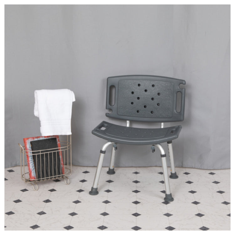 The Flash Furniture DC-HY3501L-GRY-GG Hercules Series Shower Chair is a versatile seating solution designed for safety and comfort in shower environments. This shower chair boasts an adjustable height ranging from 25-1/4 inches to 32-1/4 inches, accommodating various user preferences and needs. With a robust weight capacity of 300 pounds, it provides reliable support for a wide range of users. The chair features an extra-large back and an ergonomic saddle seat, enhancing user comfort. Its textured plastic seat is equipped with drainage holes, ensuring easy water flow and quick drying. The inclusion of side handles offers stability and convenience, while the aluminum frame delivers lightweight durability. The non-slip rubber feet provide added security on wet surfaces, minimizing the risk of slipping. This shower chair is FSA eligible, highlighting its accessibility for healthcare-related purchases. The tool-free assembly simplifies setup, making it user-friendly and hassle-free. Additionally, it is FDA approved, ensuring compliance with safety standards. The chair's sleek gray design allows it to blend seamlessly into various bathroom aesthetics. This product is ideal for those seeking a reliable and adjustable shower seating option within healthcare settings or for personal home use, offering a combination of safety, functionality, and style.