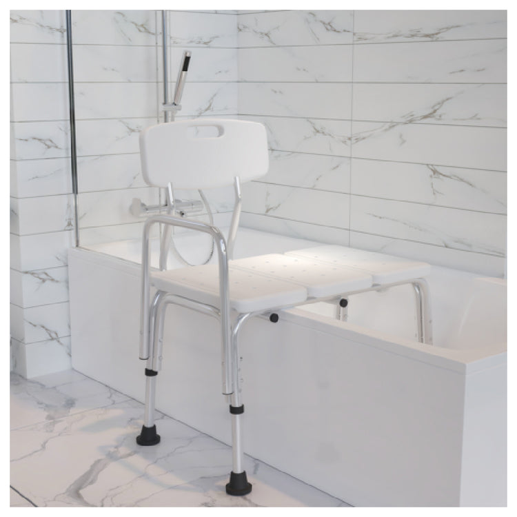 Flash Furniture DC-HY3510L-WH-GG Hercules Series Shower Transfer Bench 31-1/4" To 35-1/2" Adjustable Height