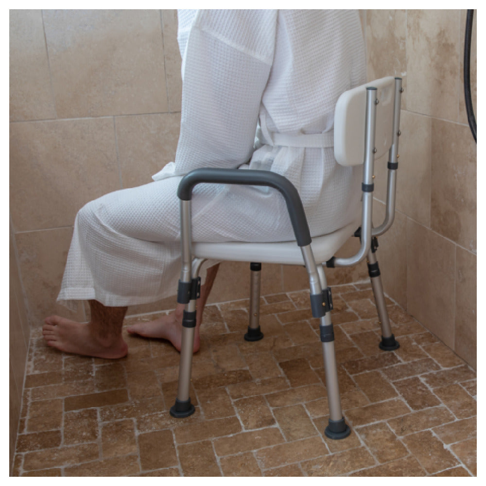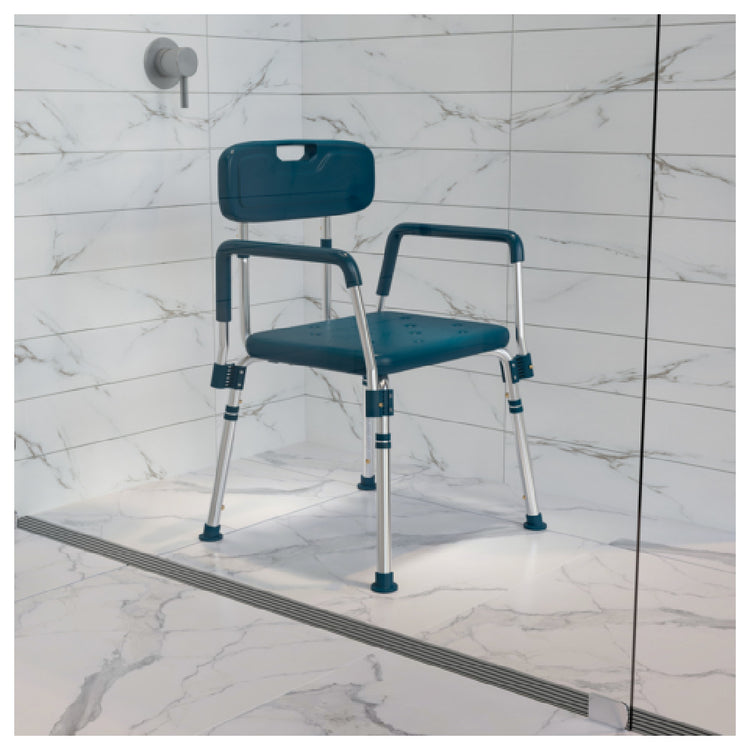 The Flash Furniture DC-HY3523L-NV-GG Hercules Series Shower Chair is a versatile and essential addition to any bathroom, offering unparalleled functionality and safety. With an adjustable height range of 28 to 33 inches, this shower chair caters to users of varying needs, ensuring a comfortable and personalized experience. The chair boasts a robust 300 lb. weight capacity, making it suitable for a diverse range of users. Constructed with a durable aluminum frame, it is lightweight yet sturdy, promising longevity and reliability. The plastic seat and back are designed with quick-release functionality, allowing for easy removal and cleaning. The textured seat features drainage holes, promoting hygiene and reducing the risk of slipping. Completing the design, the chair is equipped with non-slip rubber feet to provide enhanced stability. The inclusion of arms offers additional balance, making transfers easier and safer. This product is FSA eligible and FDA approved, ensuring it meets high standards of safety and quality. Assembling the chair is a breeze, as it requires no tools, making it accessible for all users. The navy blue color adds a touch of style, complementing any bathroom decor. This shower chair is ideal for individuals seeking a reliable and adjustable seating option for their showering needs.