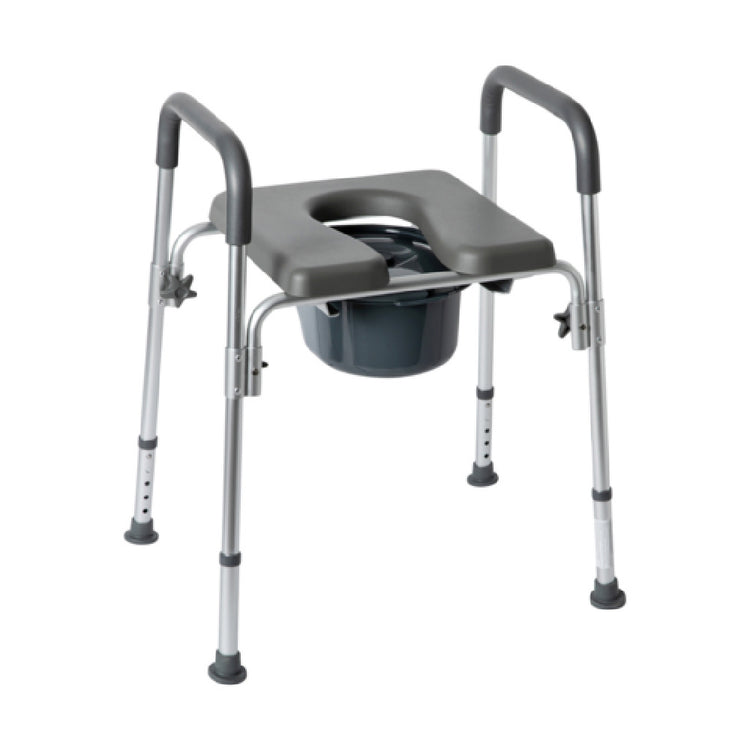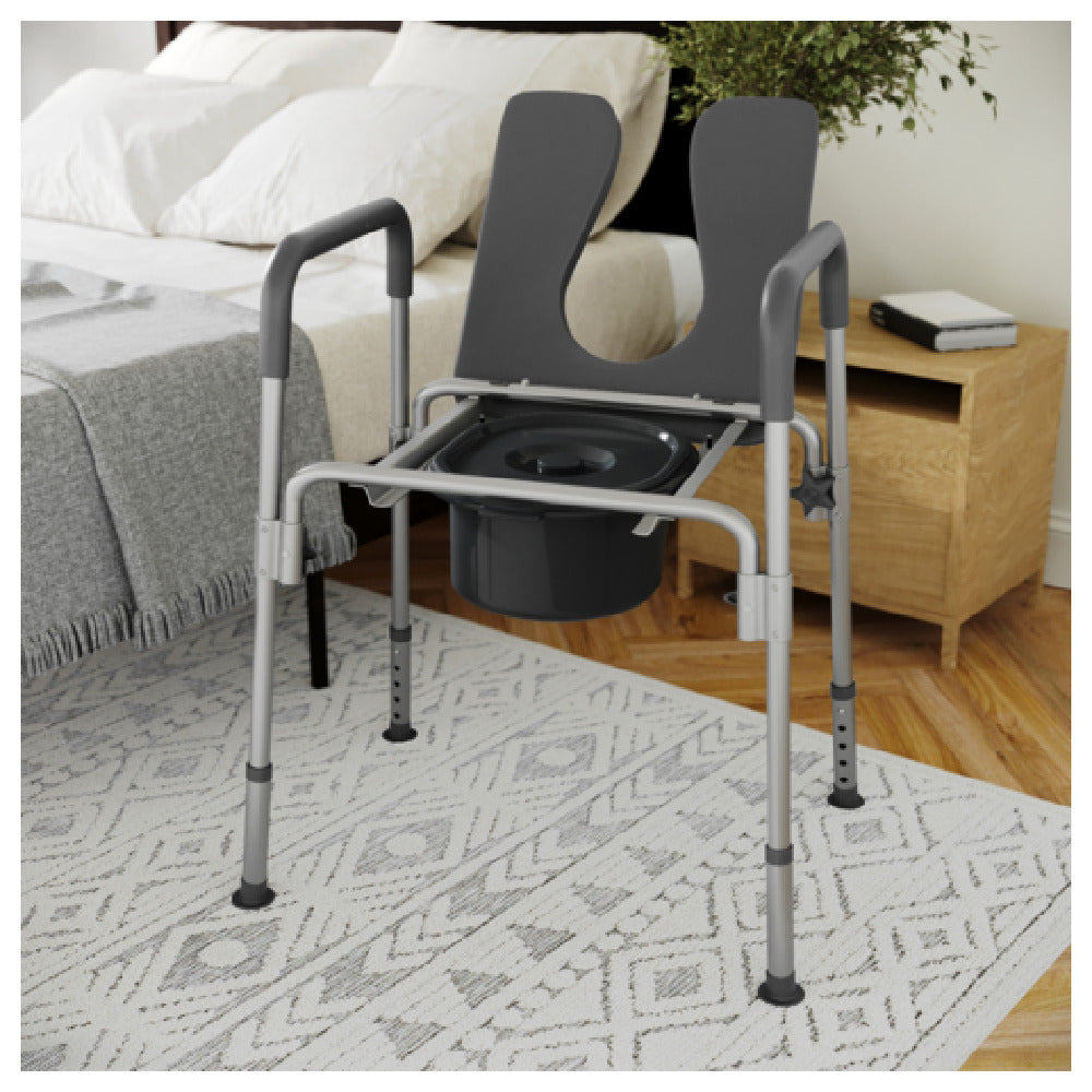 The Flash Furniture DC-HY6458L-GRY-GG Hercules Shower Commode Chair With Safety Rail is a highly functional and thoughtfully designed product ideal for various healthcare settings and personal use. Engineered with a sturdy, height-adjustable frame, it offers flexibility to accommodate different user needs and preferences. The chair is equipped with a padded seat and armrests, enhancing comfort during use. Its safety rail provides additional support, ensuring a secure experience for individuals requiring assistance. An integral feature of this commode chair is the commode pail with a lid, making it a practical option for those with limited mobility. The design is compatible with most toilets, adding to its versatility and ease of integration into existing bathroom setups. The chair's gray color lends it a neutral and professional aesthetic, suitable for diverse environments. The combination of its durability, user-friendly features, and adaptability makes the Flash Furniture DC-HY6458L-GRY-GG a reliable solution for healthcare facilities, elderly care, and home use, offering essential support and convenience for both users and caregivers.