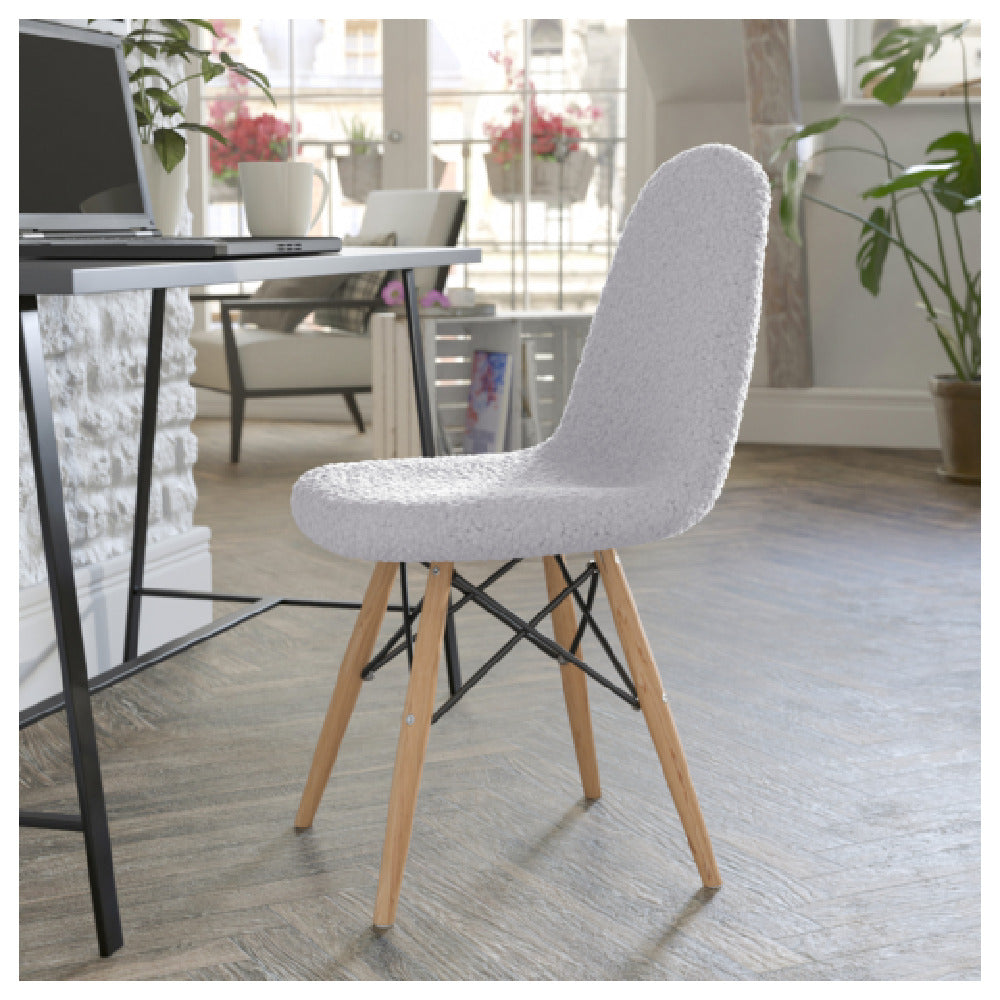 The Flash Furniture DL-10-GY-GG Zula Accent Side Chair is a meticulously crafted seating solution that combines both style and functionality, perfect for diverse market segments such as residential interiors, commercial spaces, and hospitality environments. This chair features faux shearling upholstery, offering a plush and luxurious texture that enhances comfort. The sponge padded back and seat provide additional cushioning, ensuring a comfortable seating experience for extended periods. Its curved mid-back design supports ergonomic seating posture, while the sturdy steel underframe offers durability and stability. Complementing its robust underframe are solid beechwood legs, adding a touch of elegance and natural charm to its overall appearance. The chair's sophisticated gray color scheme allows it to seamlessly blend into a variety of interior décor styles. The Flash Furniture DL-10-GY-GG Zula Accent Side Chair is a versatile piece, suitable for use in living rooms, waiting areas, and dining settings, where both aesthetic appeal and comfort are prioritized. Its thoughtful design and quality materials make it a valuable addition to any space, reflecting a balance of contemporary design and traditional craftsmanship.