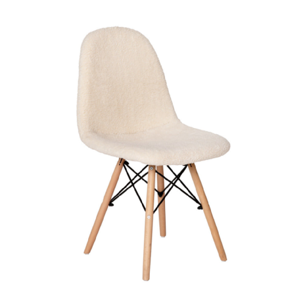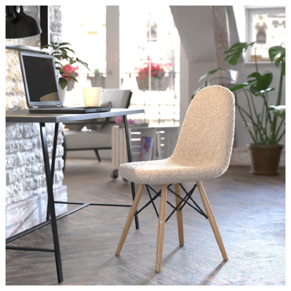 The Flash Furniture DL-10-W-GG Zula Accent Side Chair stands out with its elegant design and practical features, making it a versatile choice for various market segments. This chair features faux shearling upholstery, providing a luxurious look and comfortable touch, while the sponge-padded back and seat ensure a plush seating experience. Its curved mid-back design offers ergonomic support, ideal for both residential and commercial settings such as modern homes, offices, or hospitality environments. The chair's aesthetic is complemented by a sturdy steel underframe paired with solid beechwood legs, contributing to its durability and stability. The off-white color of the upholstery adds a touch of sophistication, making it easy to integrate into a range of interior color schemes. The Zula Accent Side Chair is designed for those who appreciate both style and functionality, providing a comfortable seating solution that does not compromise on aesthetics. This blend of design and practicality makes it a valuable asset in any setting, whether it's used for casual meetings in an office or as an elegant addition to a home dining area.