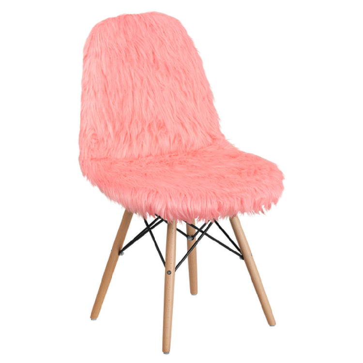 The Flash Furniture DL-12-GG Accent Side Chair seamlessly combines contemporary design with functionality, making it a versatile addition to any commercial or residential setting. This chair features a contoured form that enhances comfort and style, upholstered in luxurious shaggy dog fur fabric in a vibrant Hermosa Pink color, creating a standout piece that complements various decor themes. The chair is constructed with CA117 fire retardant foam, ensuring safety and compliance with fire standards, a critical consideration for commercial use. Its sturdy wood base is reinforced with metal bracing, providing stability and durability for long-term use in high-traffic environments. The inclusion of plastic floor glides helps protect flooring surfaces from scratches and scuffs, while also allowing for easy repositioning. With a design specifically intended for commercial applications, this accent chair offers a unique blend of aesthetic appeal and practical features suitable for offices, waiting areas, and social spaces. The Flash Furniture DL-12-GG is readily available for quick shipping, typically within 24 hours, ensuring that your space can be enhanced without delay. This product stands out within the industry by marrying safety, style, and structural integrity in a single, eye-catching chair.