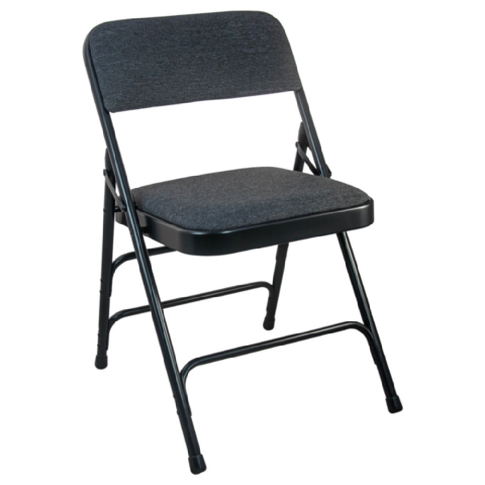The Flash Furniture DPI903F-BLKBLK Advantage Folding Chair - 300 lb. weight capacity is designed to meet the diverse needs of various markets, from event venues to educational institutions. It features a fabric upholstered seat and back for comfort and durability, enhanced with CA117 fire retardant foam for safety compliance. This chair's robust structure is underscored by an 18-gauge steel construction, offering exceptional strength and stability. The triple rivet U-brace design and double-hinged mechanism contribute to its reliable and sturdy performance during repeated use. Non-marring glides ensure that floors remain unscathed, making it ideal for environments where preserving flooring is a priority. The chair's sleek black finish complements a wide range of settings, providing both functionality and aesthetic appeal. With its impressive weight capacity and thoughtful design, the Flash Furniture DPI903F-BLKBLK Advantage Folding Chair is a versatile seating solution for any setting requiring dependable and stylish seating options.