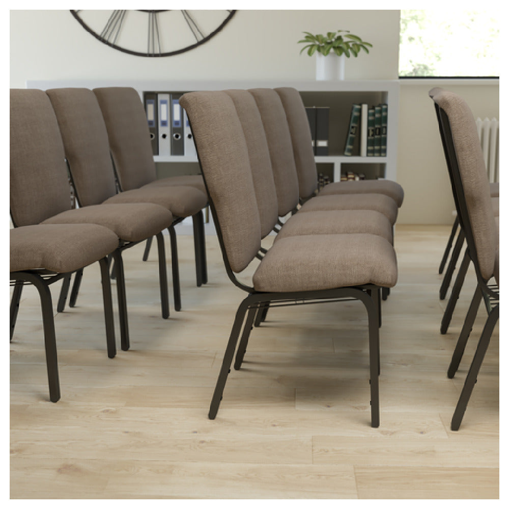 The Flash Furniture EPCHT-105 Church Chair stands out with its functional stacking feature and a generous width of 21 inches, making it a versatile addition to any communal space. Designed with an upholstered back and seat, this chair ensures comfort for extended periods, suitable for a variety of settings from churches to conference halls. The mixed tan color complements a wide range of interior decors, enhancing the aesthetic appeal of your venue without overpowering existing themes. Its stacking capability is particularly advantageous for venues that need to maximize space efficiency, allowing for easy storage and rearrangement when required. This chair caters to different market segments within the industry, including religious institutions, event venues, and educational facilities, providing durable and comfortable seating solutions. The design emphasizes practicality and endurance, ensuring that it meets the demands of frequent use. Whether setting up for large gatherings or intimate meetings, the Flash Furniture EPCHT-105 Church Chair delivers both style and substance, making it a reliable choice for spaces where functionality and comfort are paramount.