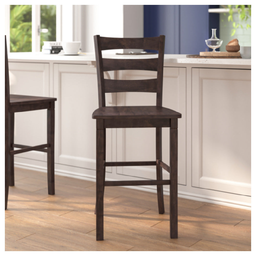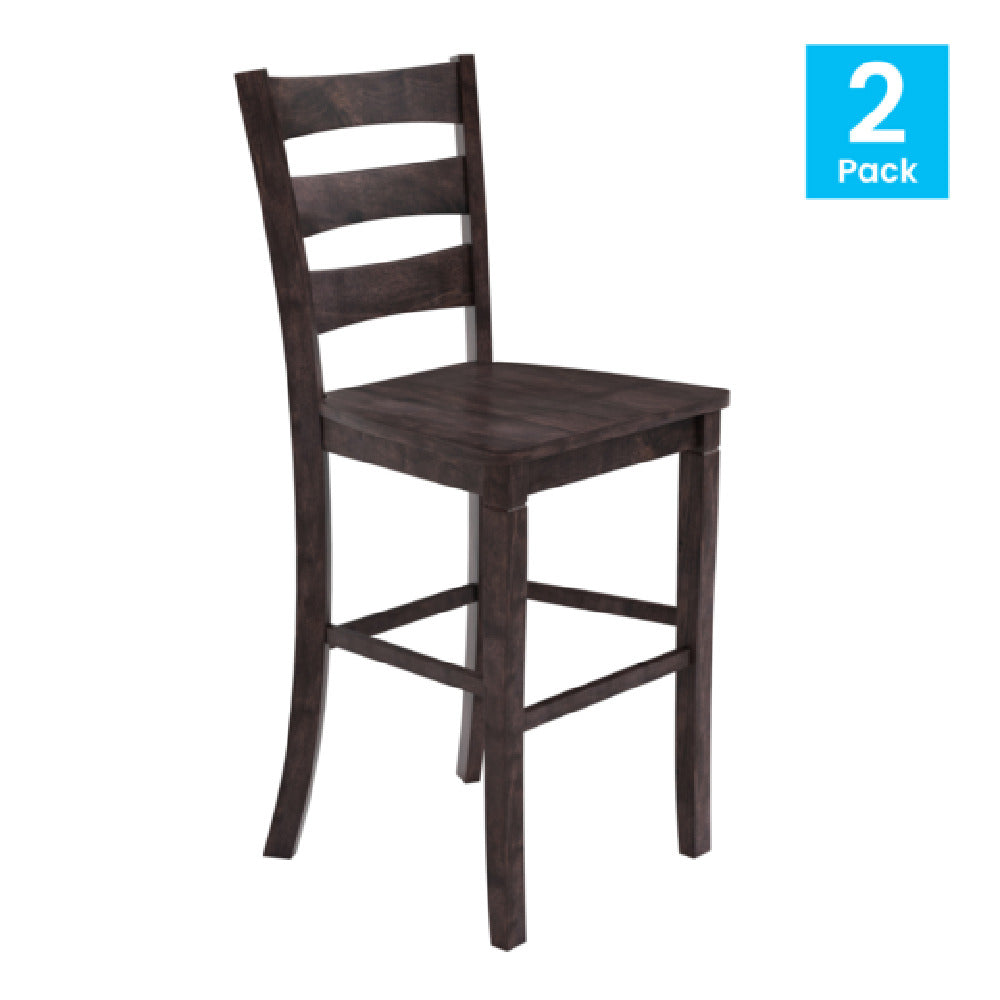The Flash Furniture ES-STBN5-29-GY-2-GG Liesel Bar Stool is a versatile seating solution designed for various environments, combining practicality with stylish appeal. This bar stool features a bar height configuration, making it suitable for counters and high tables typically found in commercial or residential settings. The stool supports up to 225 lb., ensuring durability and reliability for a range of users. It showcases a ladder back design, providing both aesthetic charm and ergonomic support. Crafted with solid hardwood frames, the Liesel Bar Stool guarantees long-lasting use, while the integrated footrests enhance comfort during extended seating. The gray wash walnut finish gives it a contemporary look that complements diverse interior decors. Sold as a set of two, these stools require assembly, offering a cost-effective option for businesses or households needing multiple seating solutions. Ideal for bar areas, kitchen islands, or recreational spaces, the Flash Furniture ES-STBN5-29-GY-2-GG Liesel Bar Stool stands out due to its combination of robust materials, functional design, and modern aesthetics, making it a valuable addition to any setting looking to blend functionality with style.