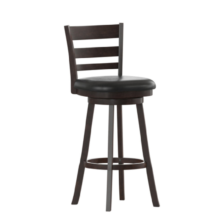 Flash Furniture ES-UN3-29-ESP-GG Zerrick Swivel Bar Stool Wood Ladderback Padded LeatherSoft Seat