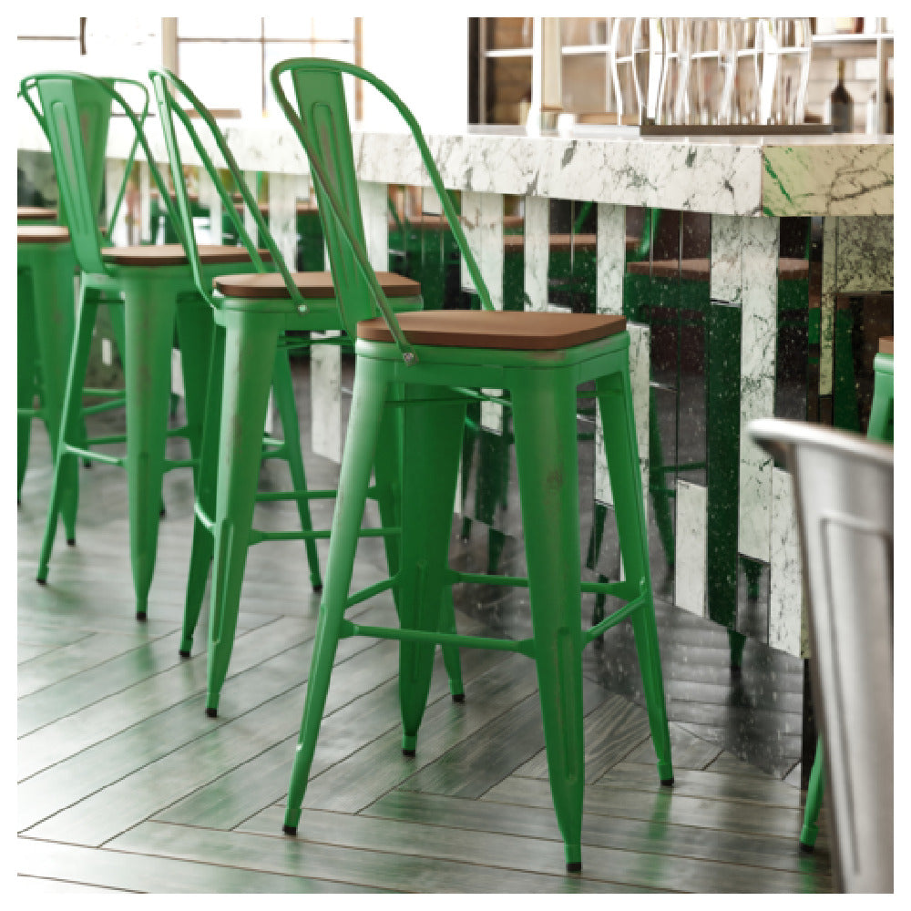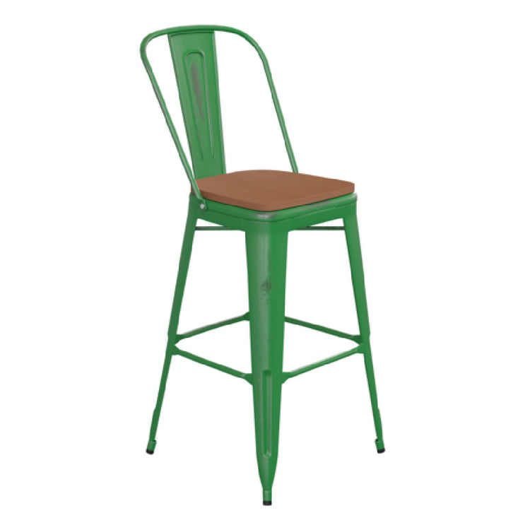 The Flash Furniture ET-3534-30-GN-PL1T-GG Carly Bar Stool boasts a substantial 500 lb weight capacity, making it a strong and reliable seating option for a variety of settings. Featuring a curved back with a vertical slat, this stool merges comfort with a contemporary design aesthetic. Its teak poly resin seat offers durability and ease of maintenance, suitable for both indoor and outdoor environments. The stool's distressed steel frame not only adds to its visual appeal but also ensures long-lasting use. For added stability, a cross brace is incorporated under the seat. The design thoughtfully includes a footrest for enhanced comfort, while floor glides protect surfaces and facilitate smooth movements. Available in a vibrant green, this stool requires assembly, offering an opportunity for customization in setup. Its robust construction and versatile design make it an excellent choice for diverse markets, ranging from residential kitchens to commercial bars and outdoor patios, where both style and functionality are paramount.