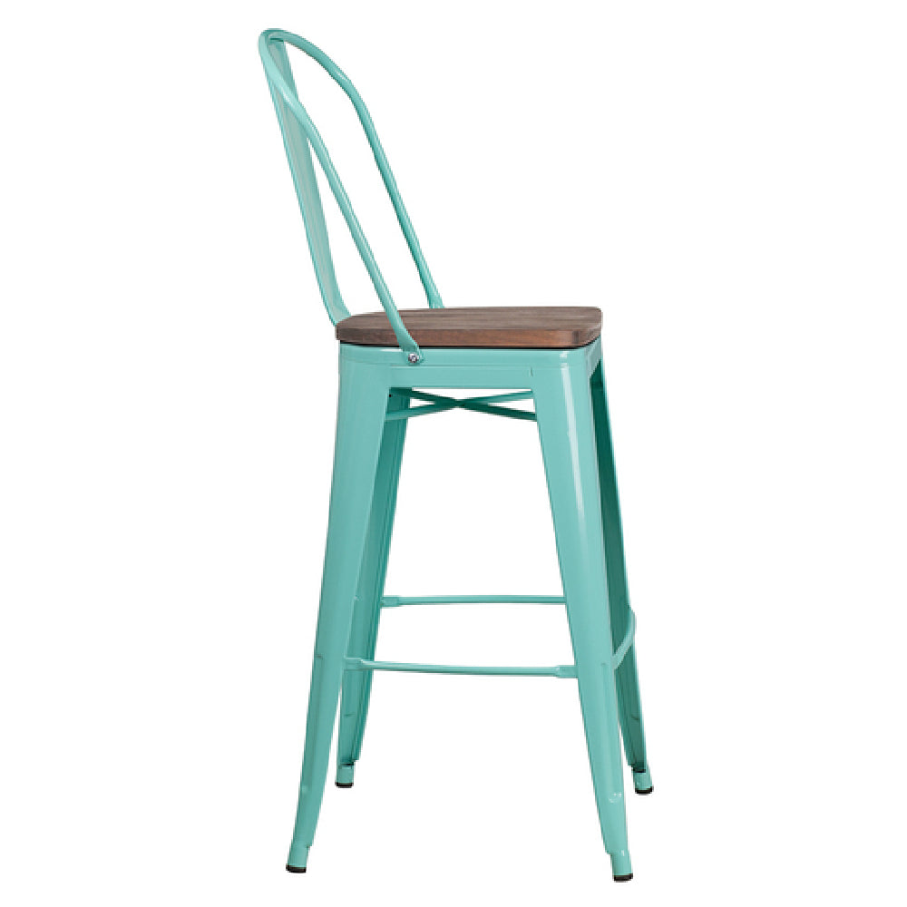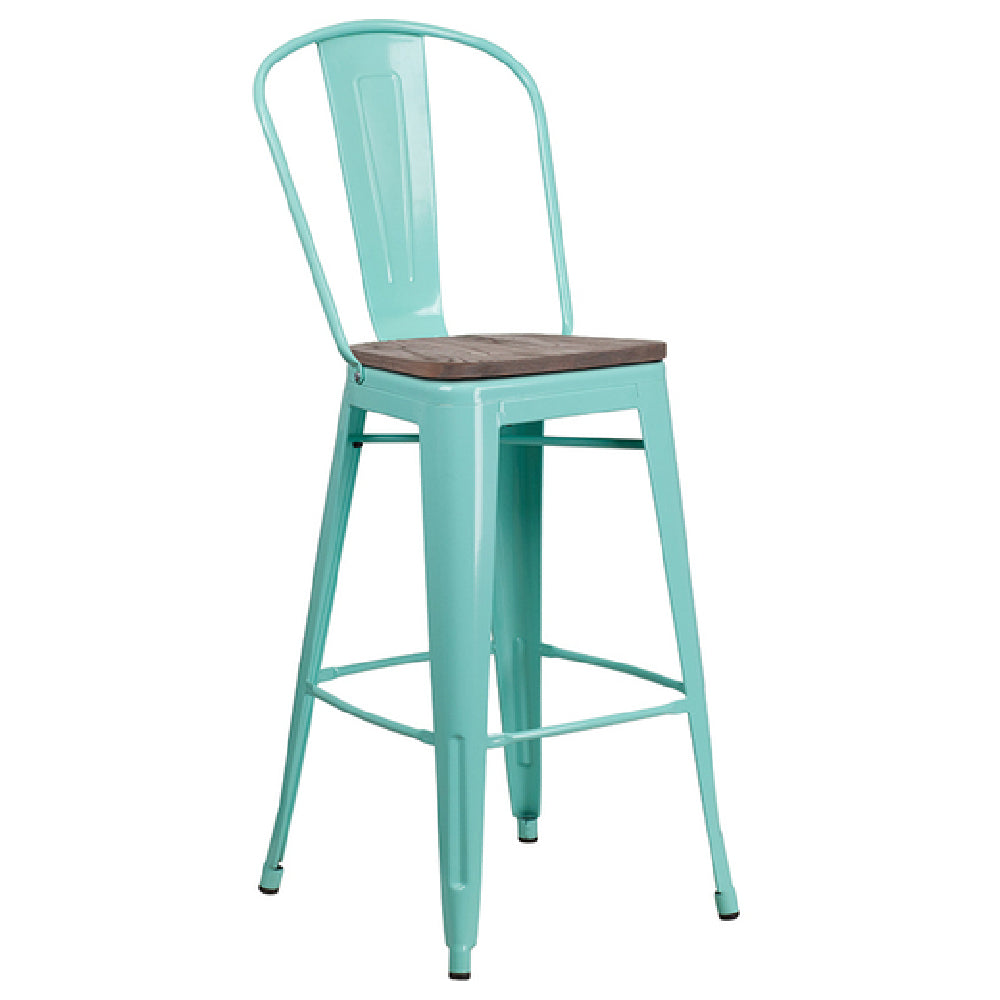 Flash Furniture ET-3534-30-MINT-WD-GG Bar Stool 500 Lb. Weight Capacity Curved Back With Vertical Slat
