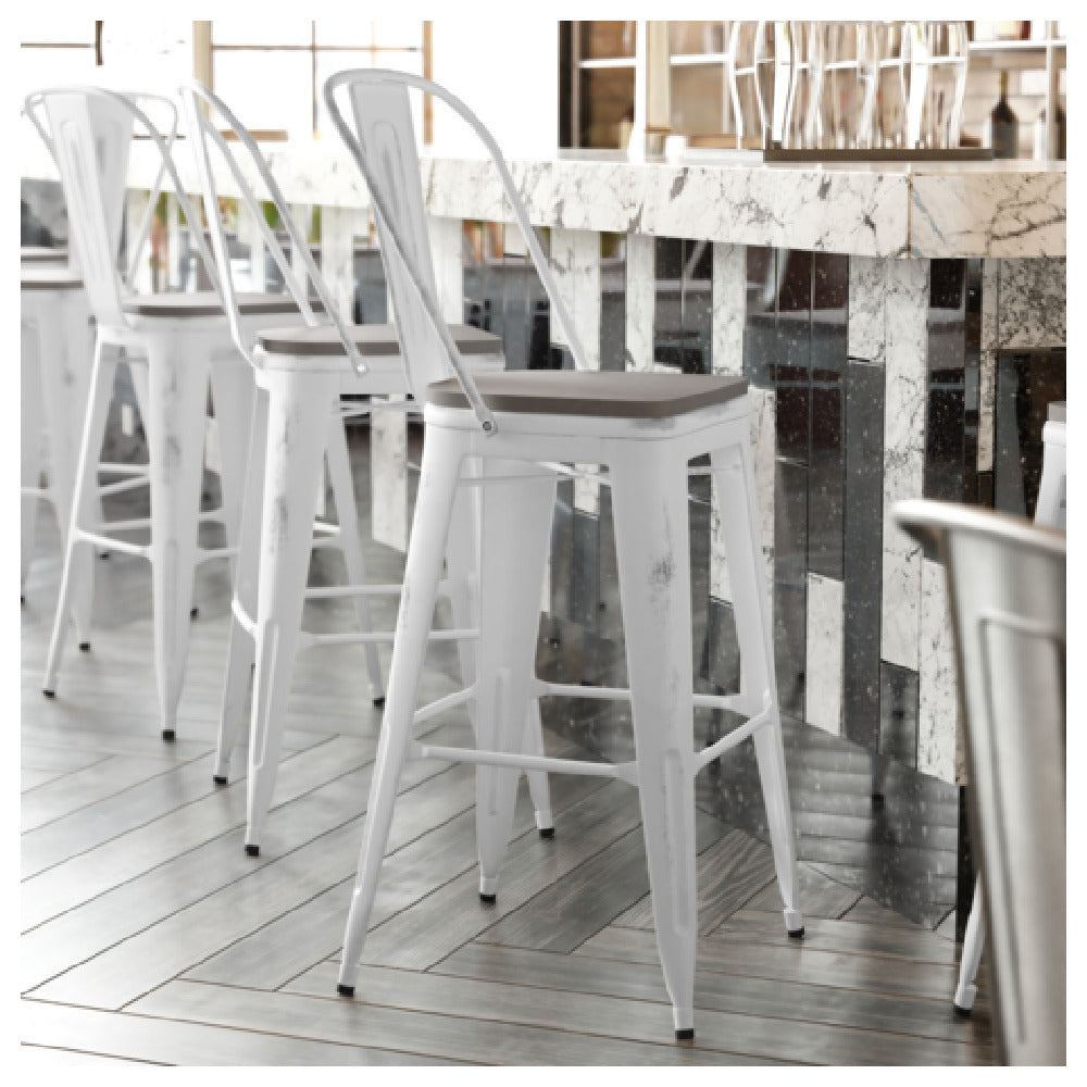 Flash Furniture ET-3534-30-WH-PL1G-GG Carly Bar Stool 500 Lb. Weight Capacity