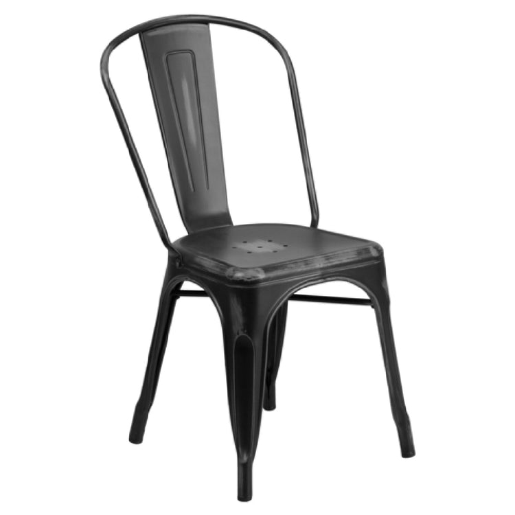 The Flash Furniture ET-3534-BK-GG Chair is a versatile seating solution with a substantial weight capacity of 500 lbs., making it an excellent choice for both commercial and residential settings. This chair is stackable, accommodating up to eight units high, which is particularly advantageous for settings requiring flexible seating arrangements. The design features a curved back with a vertical slat and drain holes in the seat, enhancing comfort and practicality, particularly in outdoor environments where quick drying is essential. Its construction includes a cross brace under the seat, contributing to its robust structure and durability. The chair is crafted from distressed metal with a powder coat finish, ensuring longevity and resistance to wear and tear. Rubber floor glides are integrated to protect flooring surfaces and facilitate smooth movement. Weighing in as a lightweight option, this chair is designed for easy handling and arrangement. Suitable for both indoor and outdoor use, it seamlessly blends into various environments, offering both functionality and style. Available in black, the Flash Furniture ET-3534-BK-GG Chair usually ships within 24 hours for in-stock items, ensuring quick delivery for urgent seating needs.