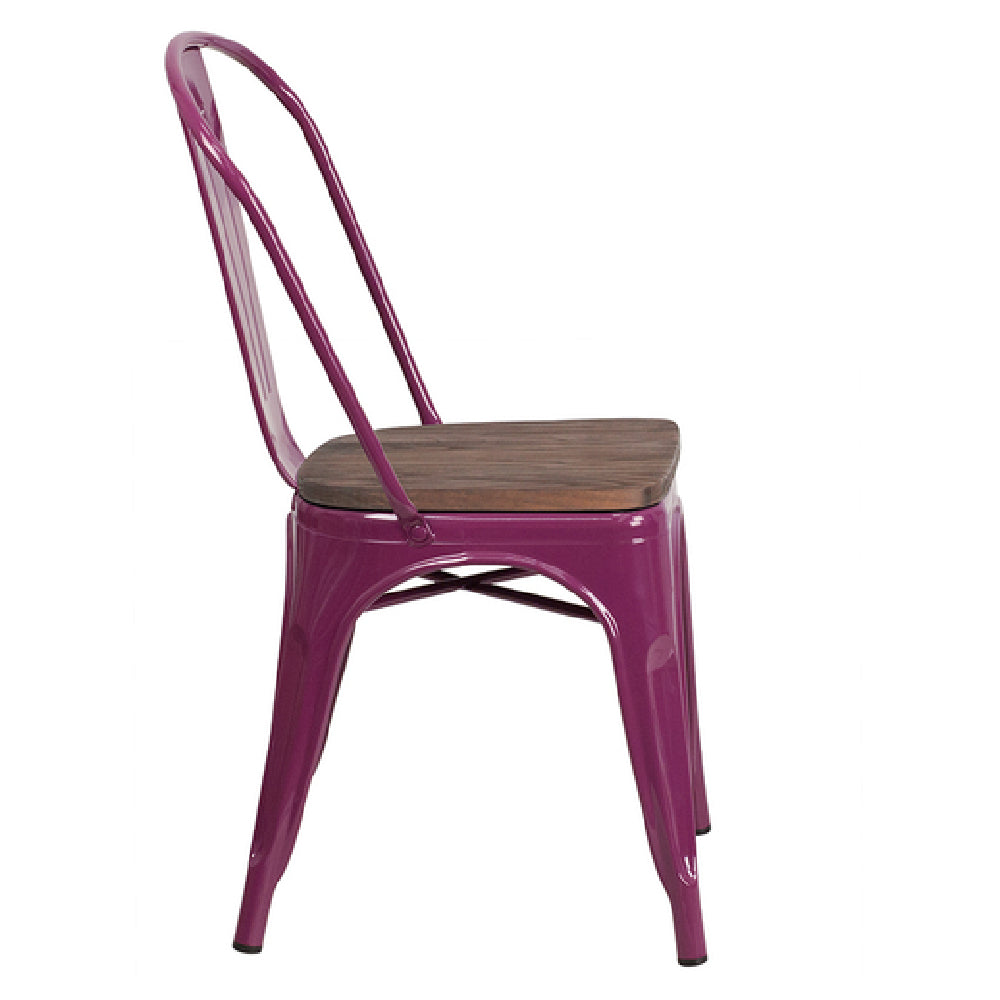 The Flash Furniture ET-3534-PUR-WD-GG Chair is a versatile seating solution with a robust weight capacity of 500 lb, making it suitable for various settings that demand durability and strength. Its stackable design allows for efficient storage, accommodating up to 8 chairs high, which is ideal for environments requiring space optimization. This chair is constructed with a metal frame finished in a durable powder coat, ensuring long-lasting use and aesthetic appeal. The curved back with a vertical slat provides ergonomic support and adds a touch of style, while the textured wood seat enhances comfort. A cross brace under the seat contributes additional stability, ensuring safety and reliability. The inclusion of rubber floor glides helps protect flooring surfaces from scratches and facilitates smooth movement. The vibrant purple color adds a pop of personality, making it a suitable choice for creative spaces or places looking to inject color into their decor. Lightweight and designed for easy handling, the Flash Furniture ET-3534-PUR-WD-GG Chair fits perfectly in commercial spaces, educational institutions, and event venues where practicality meets design. With in-stock items typically shipping within 24 hours, this chair is an accessible and practical addition to any space's furniture collection.