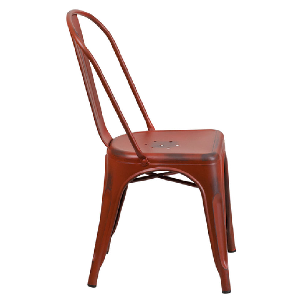 The Flash Furniture ET-3534-RD-GG Chair 500 Lb. Weight Capacity Stackable is a versatile seating solution designed for both commercial and residential environments. With a robust weight capacity of 500 lbs., this chair addresses the needs of various users, ensuring durability and reliability. Its stackable design, accommodating up to 8 chairs high, optimizes space efficiency, making it ideal for venues with fluctuating seating requirements. The chair features a curved back with a vertical slat, providing ergonomic support and comfort, while the drain holes in the seat enhance functionality for outdoor settings by preventing water accumulation. Enhanced stability is achieved through a cross brace under the seat, and the distressed metal construction with a powder coat finish offers an industrial aesthetic while ensuring longevity. Rubber floor glides protect flooring surfaces and facilitate smooth movement, underscoring its suitability for both indoor and outdoor use. Available in a striking kelly red color, this chair is lightweight yet sturdy, efficiently combining form and function. The ET-3534-RD-GG chair is a practical choice for spaces that demand adaptability and robust performance, shipping swiftly within 24 hours for in-stock items to meet urgent seating needs.