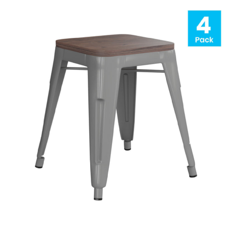 Flash Furniture ET-BT3503-18-SIL-WD-GG Kai Stool 18"H 250lb Weight Capacity - 1/Set