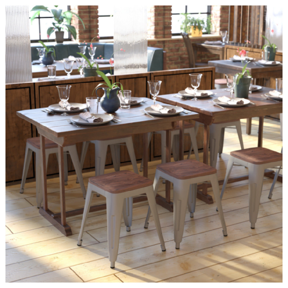 The Flash Furniture ET-BT3503-18-SIL-WD-GG Kai Stool is a versatile seating solution designed to meet the diverse needs of various industries. Featuring an 18-inch height and a robust weight capacity of 250 pounds, this stool combines strength with practicality. Its stackable, backless, square design allows for efficient storage, making it ideal for environments where space optimization is crucial. The stool boasts a wooden seat that adds a touch of elegance, supported by welded metal construction for enhanced durability. Under seat bracing reinforces its stability, ensuring it withstands regular use. Plastic floor glides are incorporated to protect flooring surfaces from scratches and damage, a valuable feature in settings like schools, cafes, and casual dining spaces. The stool's silver finish adds a contemporary touch, aligning with modern interior aesthetics. Sold as a set of four, this product requires assembly, providing a hands-on approach for those who prefer to customize their furniture setup. The Flash Furniture ET-BT3503-18-SIL-WD-GG Kai Stool embodies a blend of functionality and style, catering to home, commercial, and educational settings where dependable seating solutions are essential.
