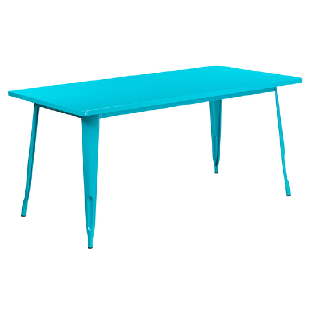 Flash Furniture ET-CT005-CB-GG Table - 63"W x 31-1/2"D x 29-1/2"H Dining Height is a versatile and robust furniture piece suitable for both commercial and residential settings. Constructed with a smooth rectangular top, it measures 63 inches in width, 31-1/2 inches in depth, and 29-1/2 inches in height, making it ideal for diverse dining environments. The table features a 1-inch thick edge with a brace underneath, ensuring additional stability and durability. Designed with galvanized steel and a powder coat finish, it promises to withstand various indoor and outdoor conditions. The rubber floor glides protect surfaces from scratches, enhancing its functionality in different spaces. Available in a striking crystal teal/blue color, this table requires assembly, making it a practical choice for those looking to add a pop of color and reliable performance to their dining area. The Flash Furniture ET-CT005-CB-GG is engineered to cater to the unique needs of different market segments, from bustling commercial eateries to serene residential patios, providing a blend of aesthetic appeal and structural integrity. With in-stock items typically shipping within 24 hours, it ensures a prompt addition to any setting.