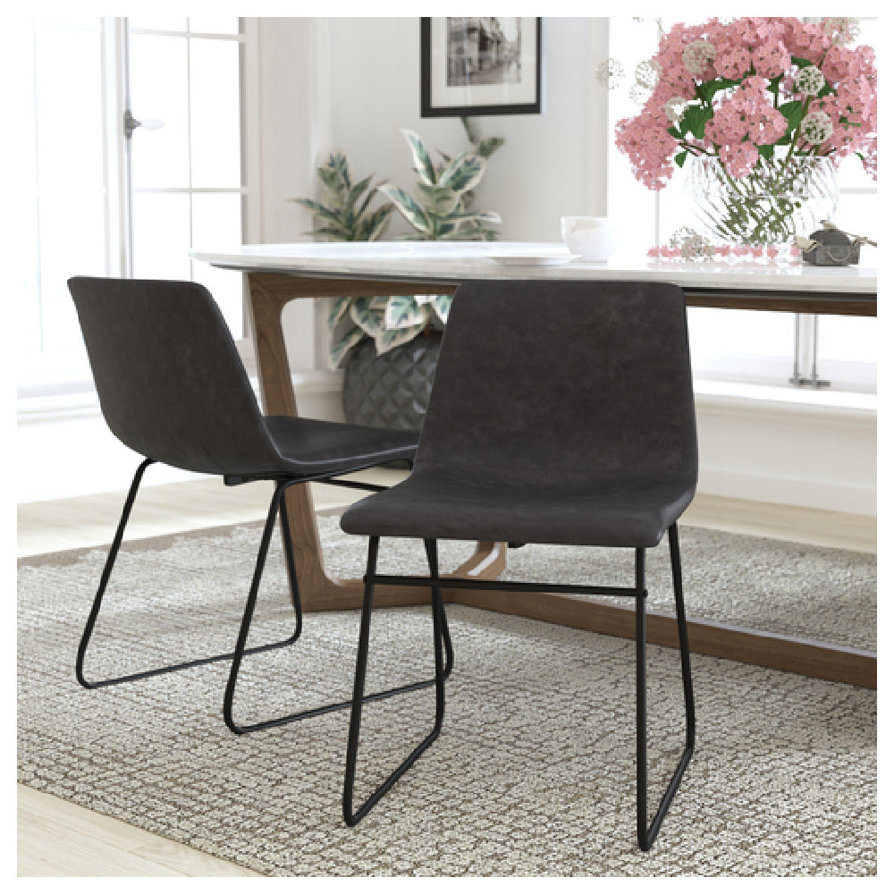 The Flash Furniture ET-ER18345-18-GY-BK-GG Dining Chair is a versatile seating solution designed for both residential and commercial environments. With a weight capacity of 250 pounds, this chair is built to accommodate a wide range of users while maintaining comfort and stability. Its mid-back design provides ergonomic support, making it suitable for extended use in dining settings. The sled base adds a modern aesthetic and enhances the chair's stability on various floor surfaces, complemented by adjustable floor glides to prevent any scratches or noise. Crafted with LeatherSoft upholstery, the dark gray seat offers a soft, luxurious feel paired with the durability of leather and polyurethane. The black frame not only provides a sleek contrast but also ensures robust support for long-lasting use. Available as a set of two, this dining chair is ideal for dining rooms, offices, cafes, or any setting that requires stylish yet sturdy seating options. Its combination of comfort, functionality, and modern design elements makes the Flash Furniture ET-ER18345-18-GY-BK-GG Dining Chair a valuable addition to any space seeking versatile and reliable seating solutions.
