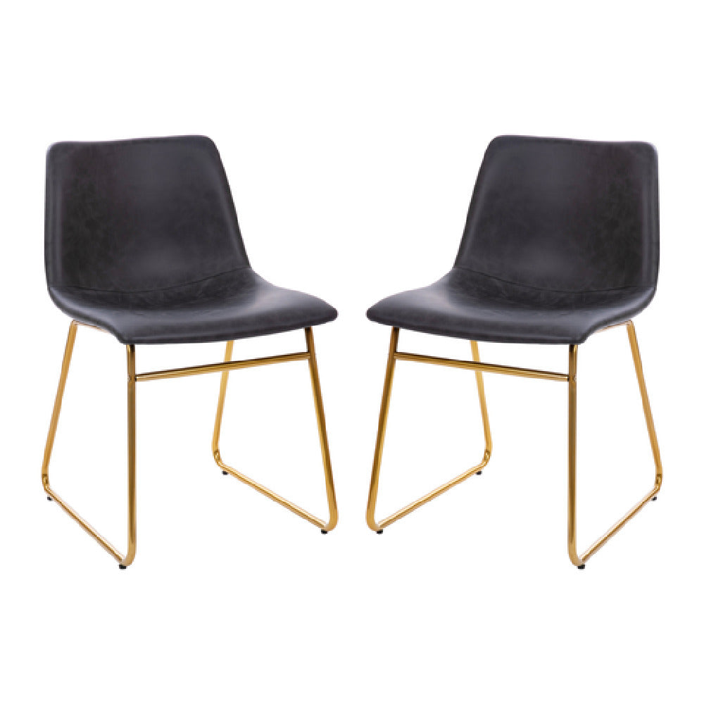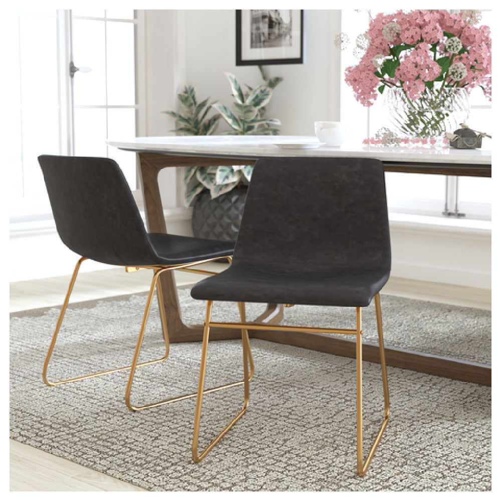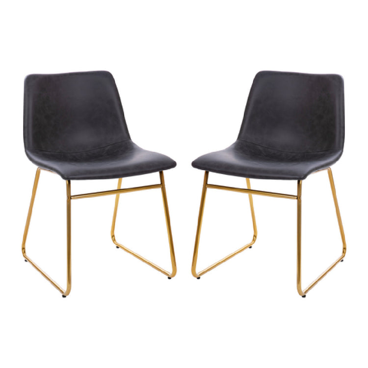 The Flash Furniture ET-ER18345-18-GY-GG Dining Chair is a stylish and functional seating solution that seamlessly blends into various environments, from residential dining areas to commercial settings like cafes and restaurants. With a sturdy weight capacity of 250 lb., it accommodates a wide range of users, ensuring durability and stability. The chair features a mid-back design, providing ample support and comfort for extended sitting periods. Its sled base not only adds a modern aesthetic but also enhances stability on various flooring types. The chair is equipped with adjustable floor glides, allowing for smooth adjustments and preventing floor scratches. The seat is crafted from LeatherSoft in a sophisticated dark gray hue, offering a supple and comfortable seating experience. Complementing this is a gold frame that adds a touch of elegance and sophistication. Available as a set of 2, these chairs are an excellent choice for enhancing dining spaces with their blend of comfort, durability, and modern design.