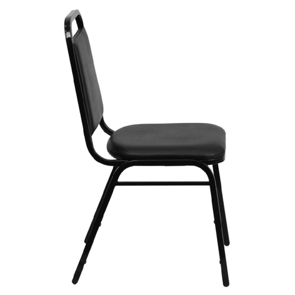 The Flash Furniture FD-BHF-2-GG Hercules Series Stacking Banquet Chair is a versatile seating solution designed to meet diverse commercial needs with its 500 lb. weight capacity. This chair features a trapezoidal seamless back and a vinyl upholstered seat, providing comfort and durability. With a 1-1/2" thick CA117 fire retardant foam seat, it prioritizes safety and resilience. The chair's double support braces and 16 gauge steel frame enhance its structural integrity, while the black powder coated frame finish adds aesthetic appeal. Plastic bumper guards and plastic floor glides protect against floor damage and ensure easy maneuverability. Designed for commercial use, this chair stacks up to 15 chairs high, making it an efficient space-saving option for event venues, conference centers, and banquet halls. Shipping fully assembled, the chair offers convenience and is typically dispatched within 24 hours for in-stock items. Its blend of functionality, safety features, and robust construction makes it a preferred choice for businesses seeking reliable and stylish seating solutions.