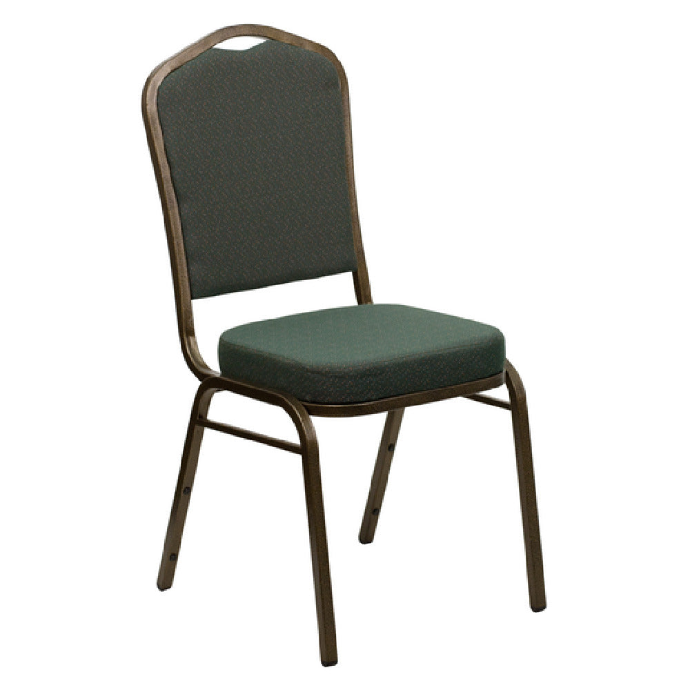 The Flash Furniture FD-C01-GOLDVEIN-0640-GG Hercules Series Stacking Banquet Chair is engineered for versatility and durability, making it a staple in banquet halls, conference centers, and hospitality settings. Boasting a substantial 500 lb. weight capacity, this chair features a crown design seamless back panel that adds both elegance and comfort. Its seat and back are upholstered with patterned fabric, complemented by a 2-1/2" thick CA117 fire retardant foam seat for enhanced safety and comfort. Structural integrity is assured with double support braces and a 16 gauge steel frame, finished with an eye-catching gold vein powder coating for resistance to wear and tear. The inclusion of plastic bumper guards prevents damage during stacking, while plastic floor glides protect flooring surfaces. This chair is designed for commercial use and can be stacked up to 14 chairs high, optimizing storage and transport efficiency. It ships fully assembled, ensuring immediate usability, and in-stock items are typically dispatched within 24 hours. The Flash Furniture FD-C01-GOLDVEIN-0640-GG Hercules Series chair is a robust and reliable seating solution, combining functionality and style for diverse commercial applications.